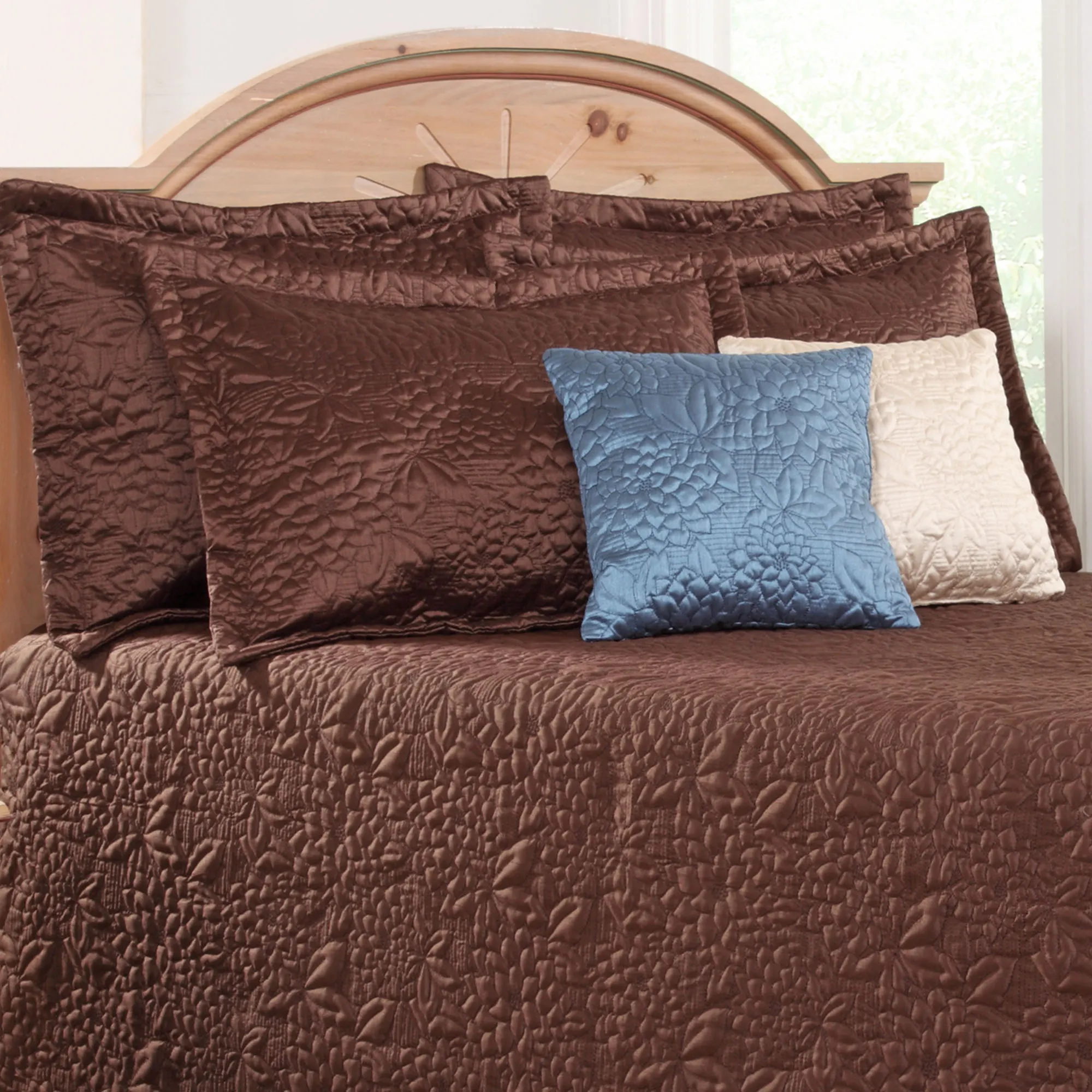 Decorate your bedroom with the stylish and silky smooth Gardenia Floral Quilted Bedding. This attractive, solid color polyester bedding ensemble features intricately quilted gardenia florals and leaves. Specify color: Beige, Burgundy, Espresso, or Medium Blue.