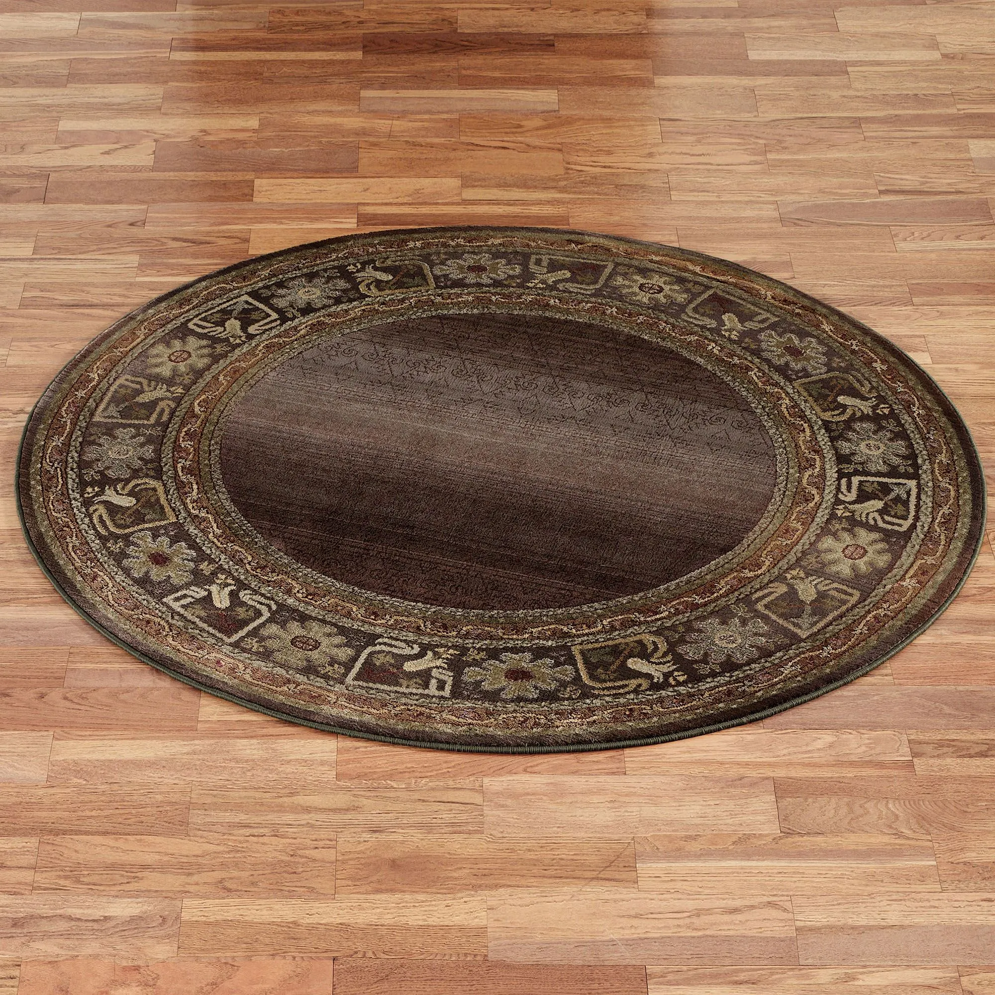 The Generations Border Round Area Rugs are Wilton woven in Egypt from polypropylene with abrashed fields and woven backing. Cross-woven construction creates rugs with up to 36 colors, varying from light to deep tones. Rugs, .5" thick, feature ethnic motifs alternating with fanciful blocks. We recommend professional cleaning by a rug cleaner.