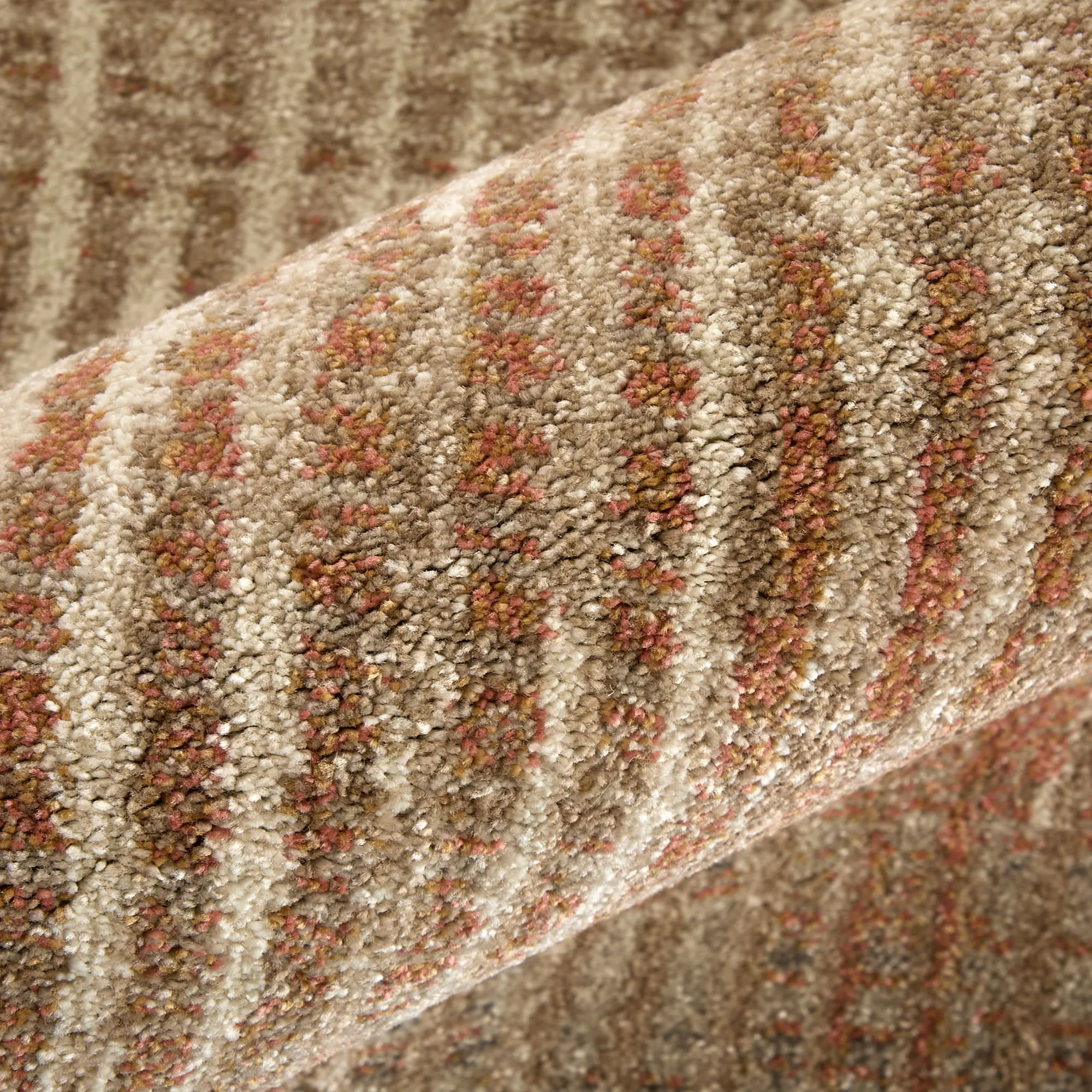 • Shades of ivory, beige, charcoal, taupe, rust, gray, and brown