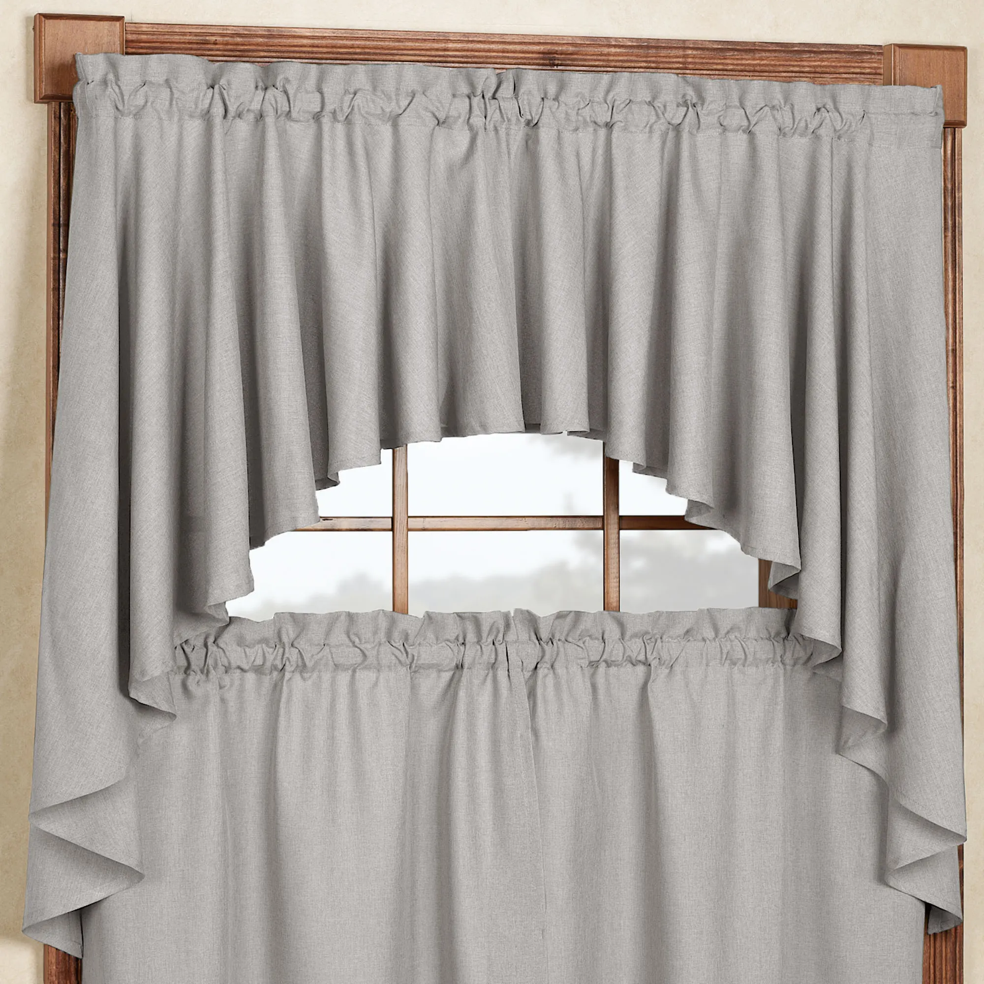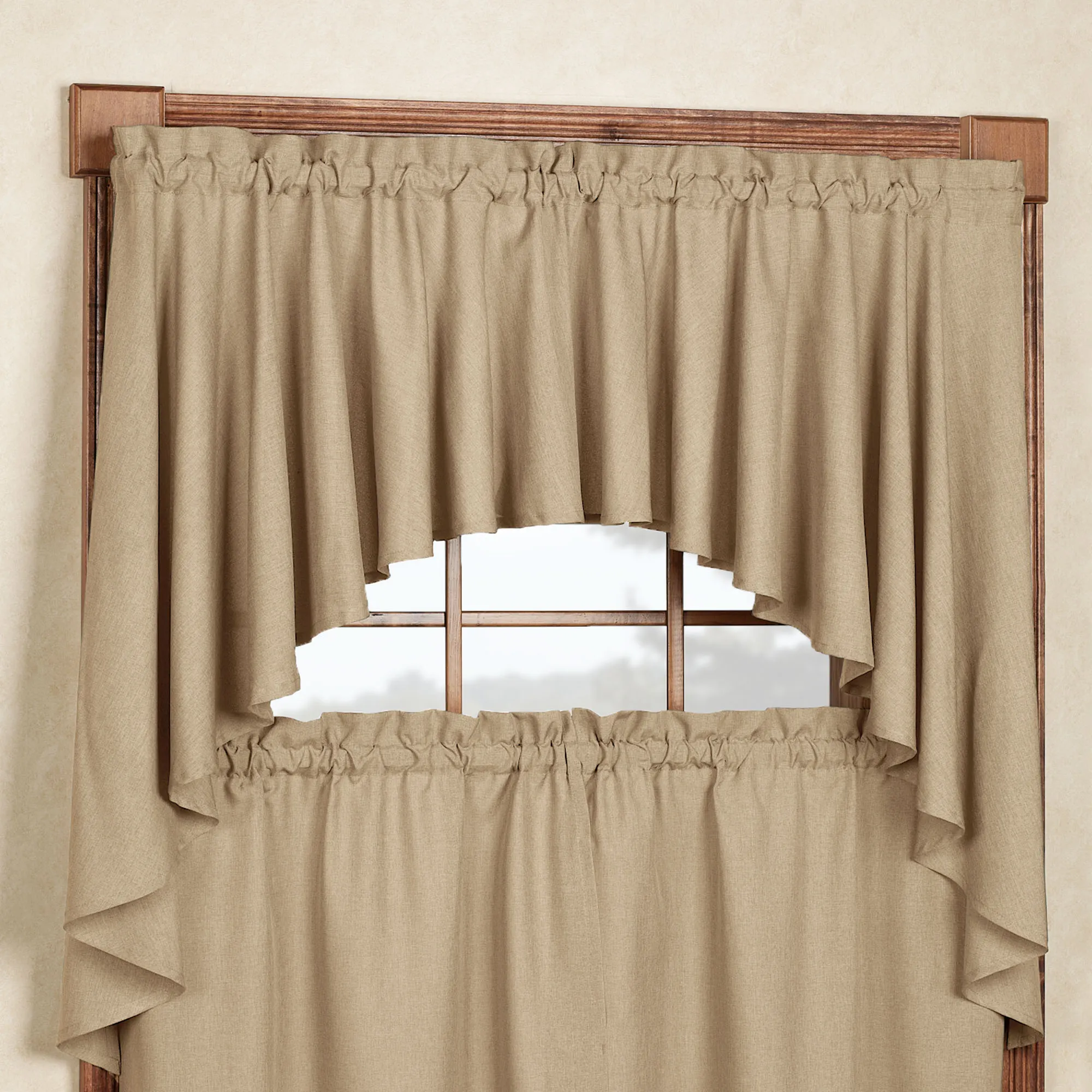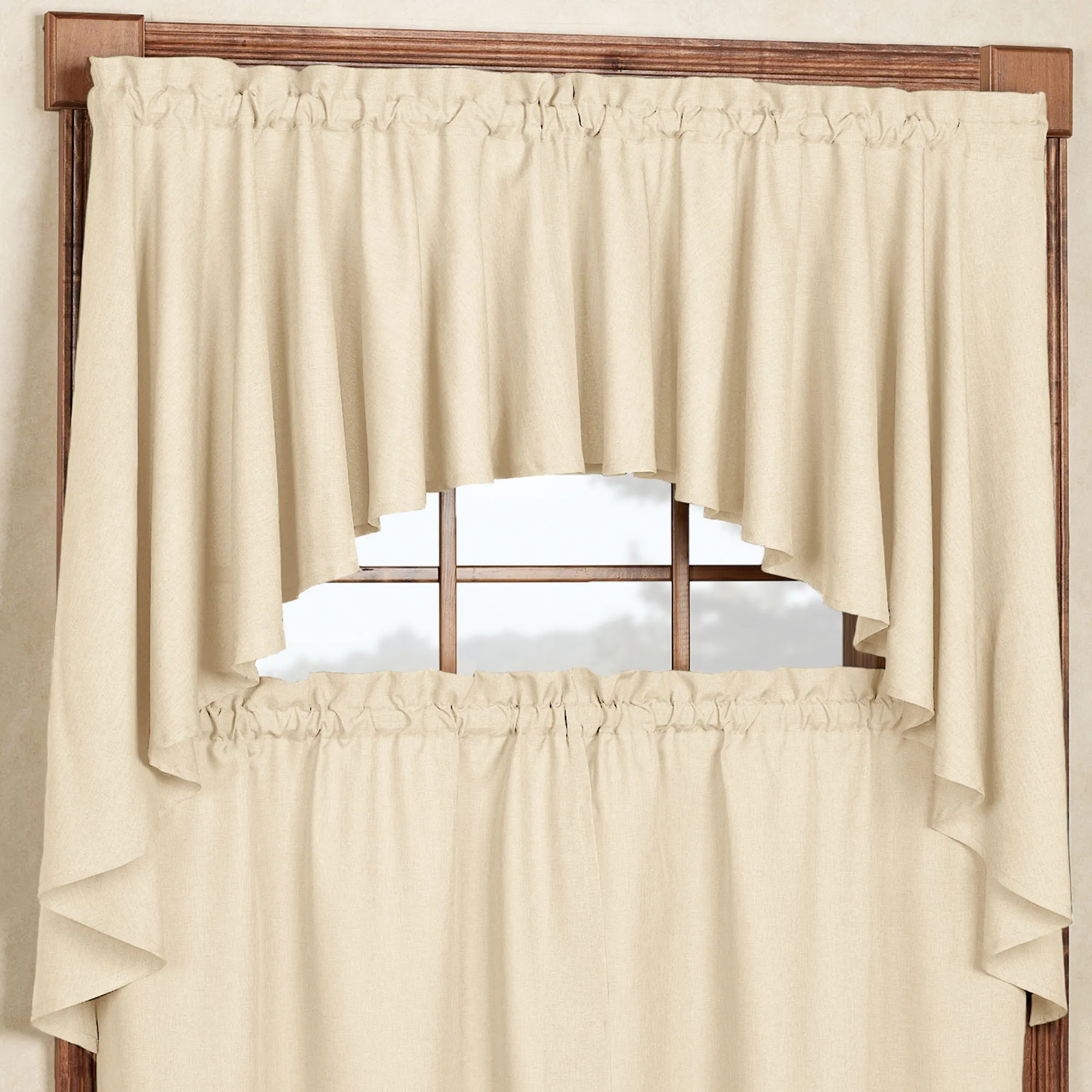 Found the perfect curtain swag for her newly designed bathroom. Not too long but to the window sill. The linen color is classy and the style is perfect with a bit of flair, but not too much!