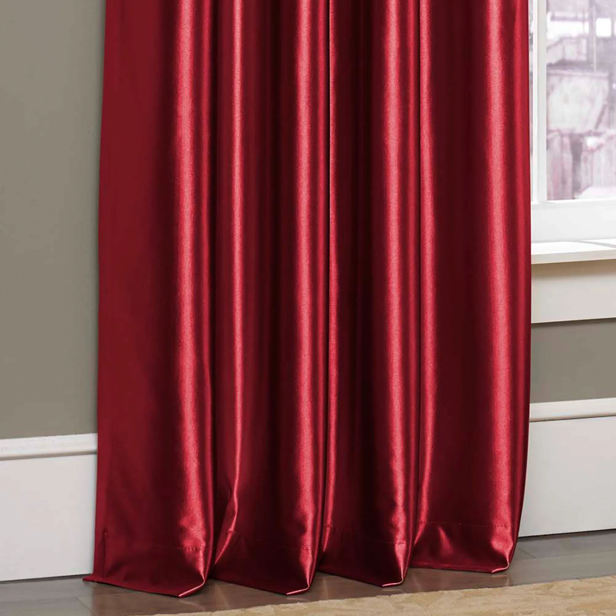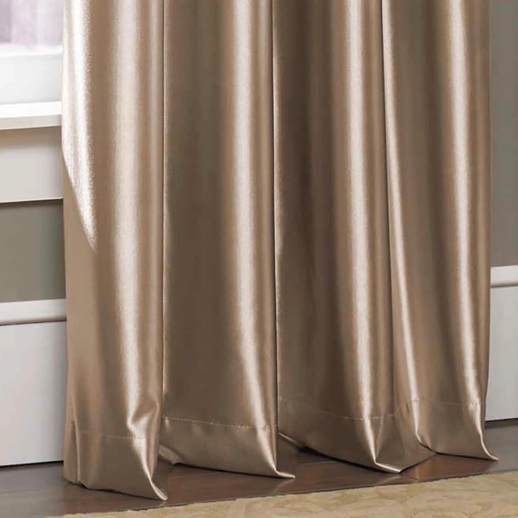 The Glisten Grommet Curtain Panel is polyester satin with metal grommets. Imported.