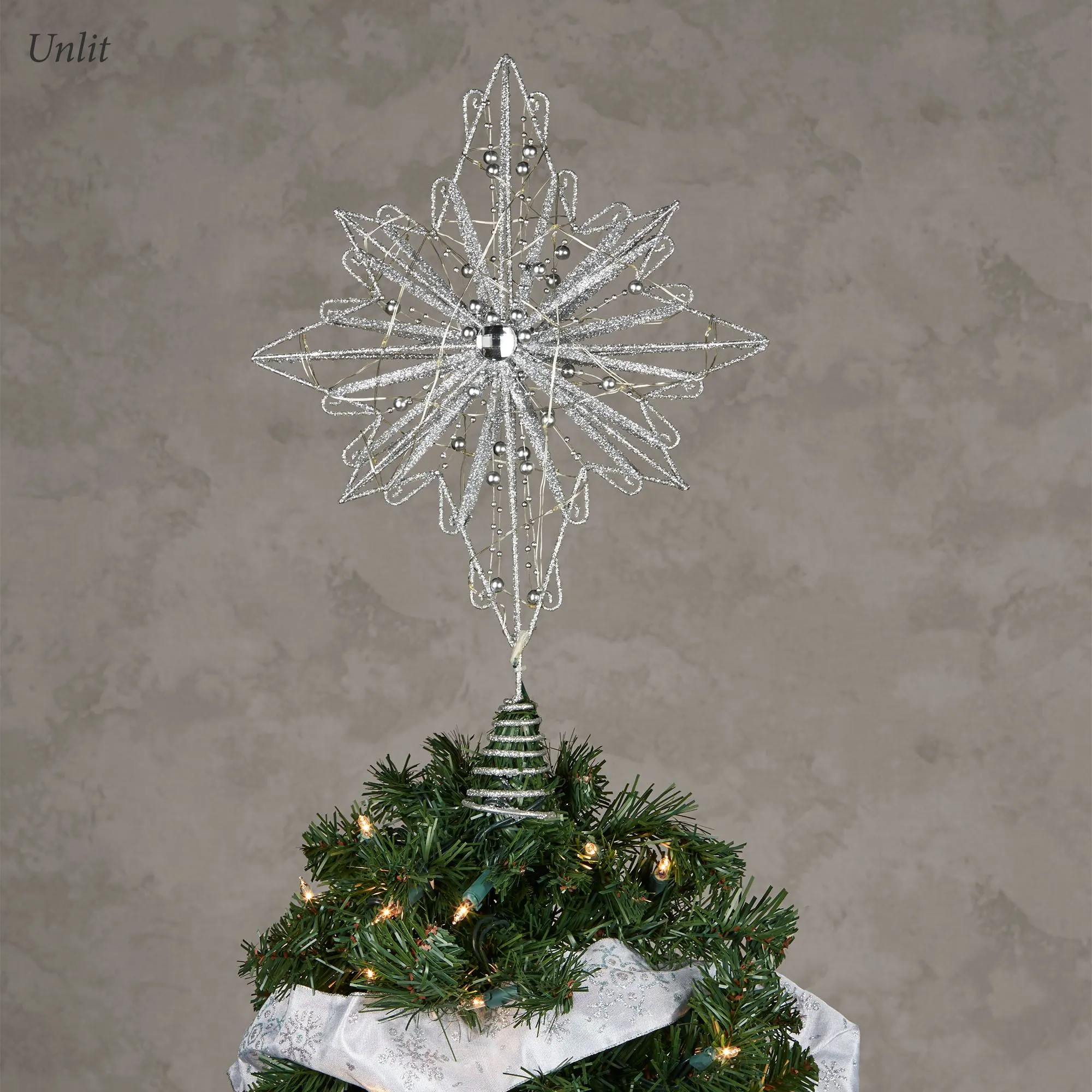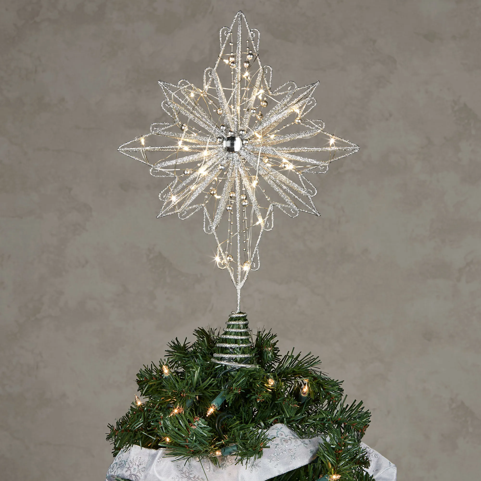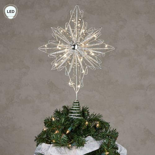 • Glittery lighted star tree topper