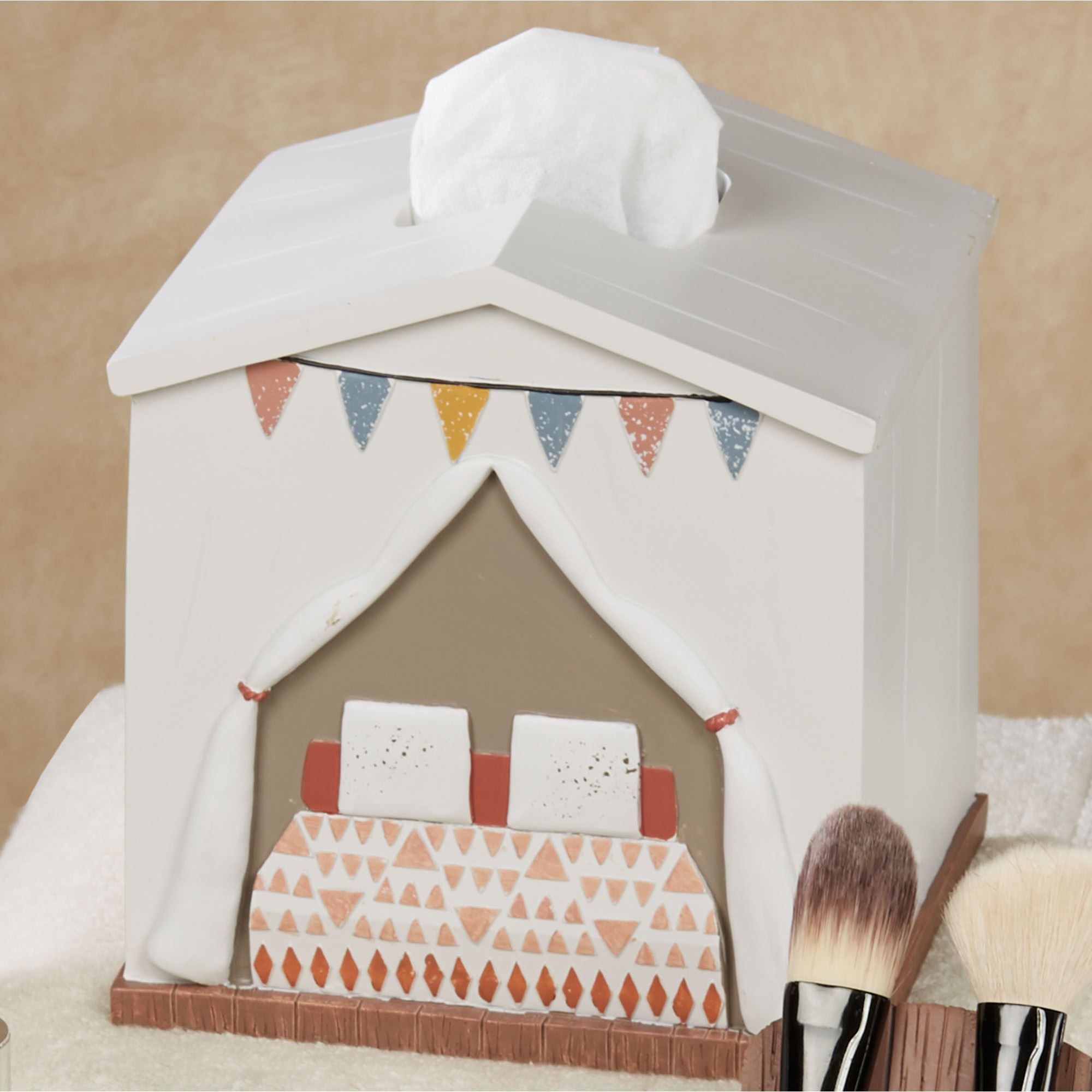 The Gone Glamping Bath Accessories showcase your traveling spirit and sense of adventure. Each charming resin accessory features a unique textured shape handpainted in natural colors. Click on the Details tab for a description of each item. Specify Tissue Cover, Wastebasket, Brush Holder, Covered Jar, or Tray; the other accessories are no longer available.