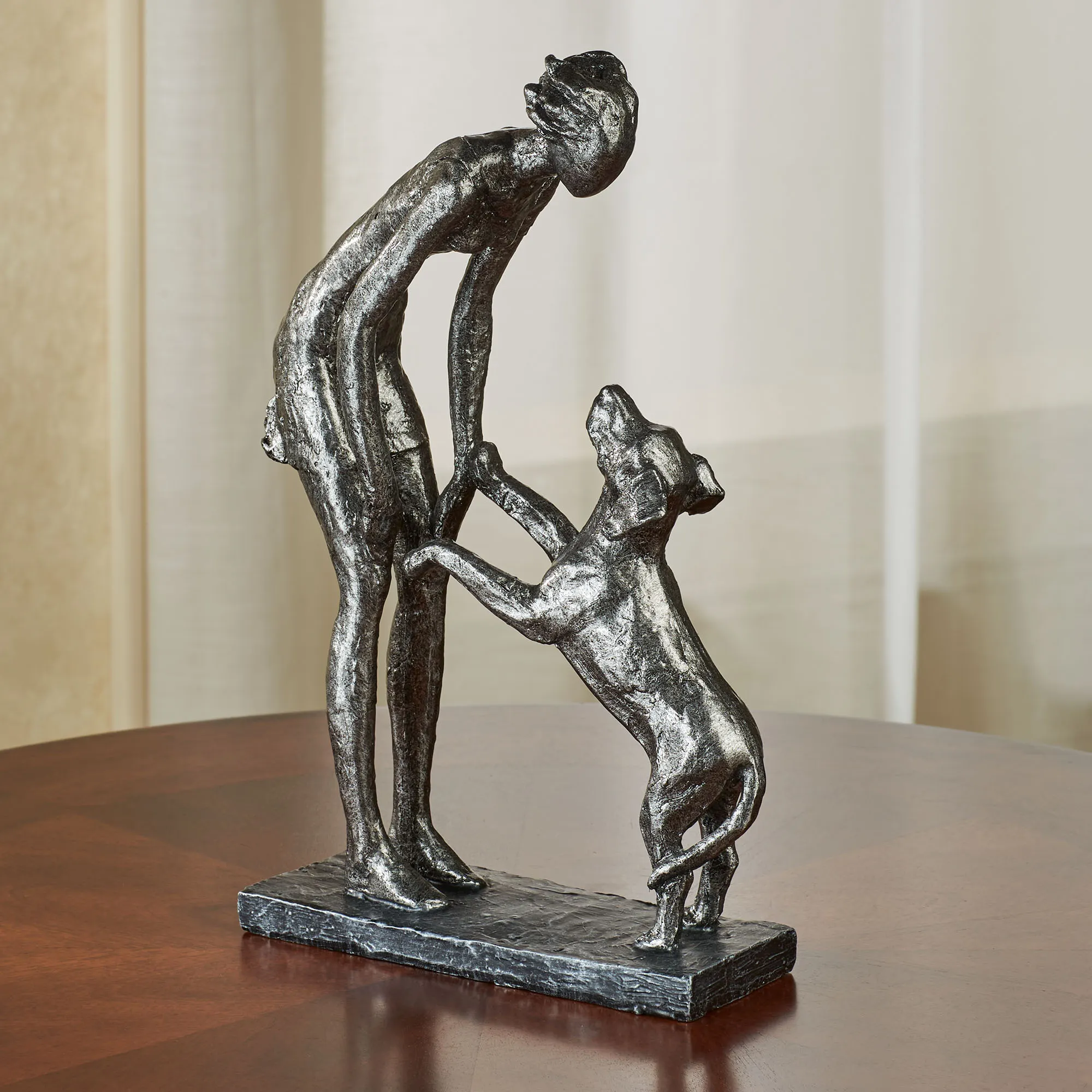 Good Dog Nickel Woman and Pet Table Sculpture
