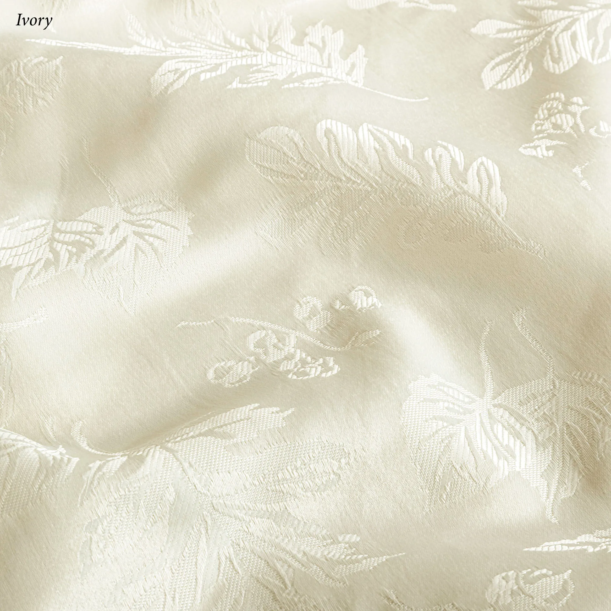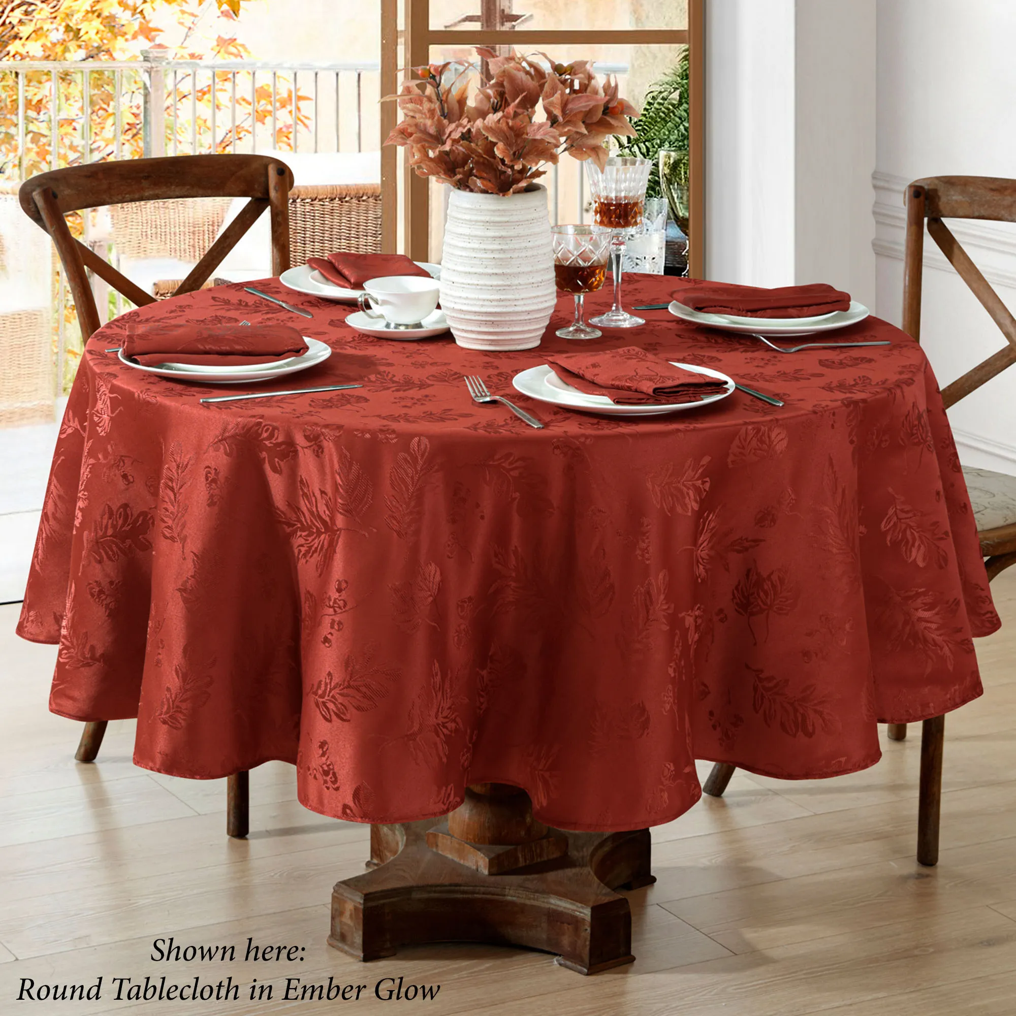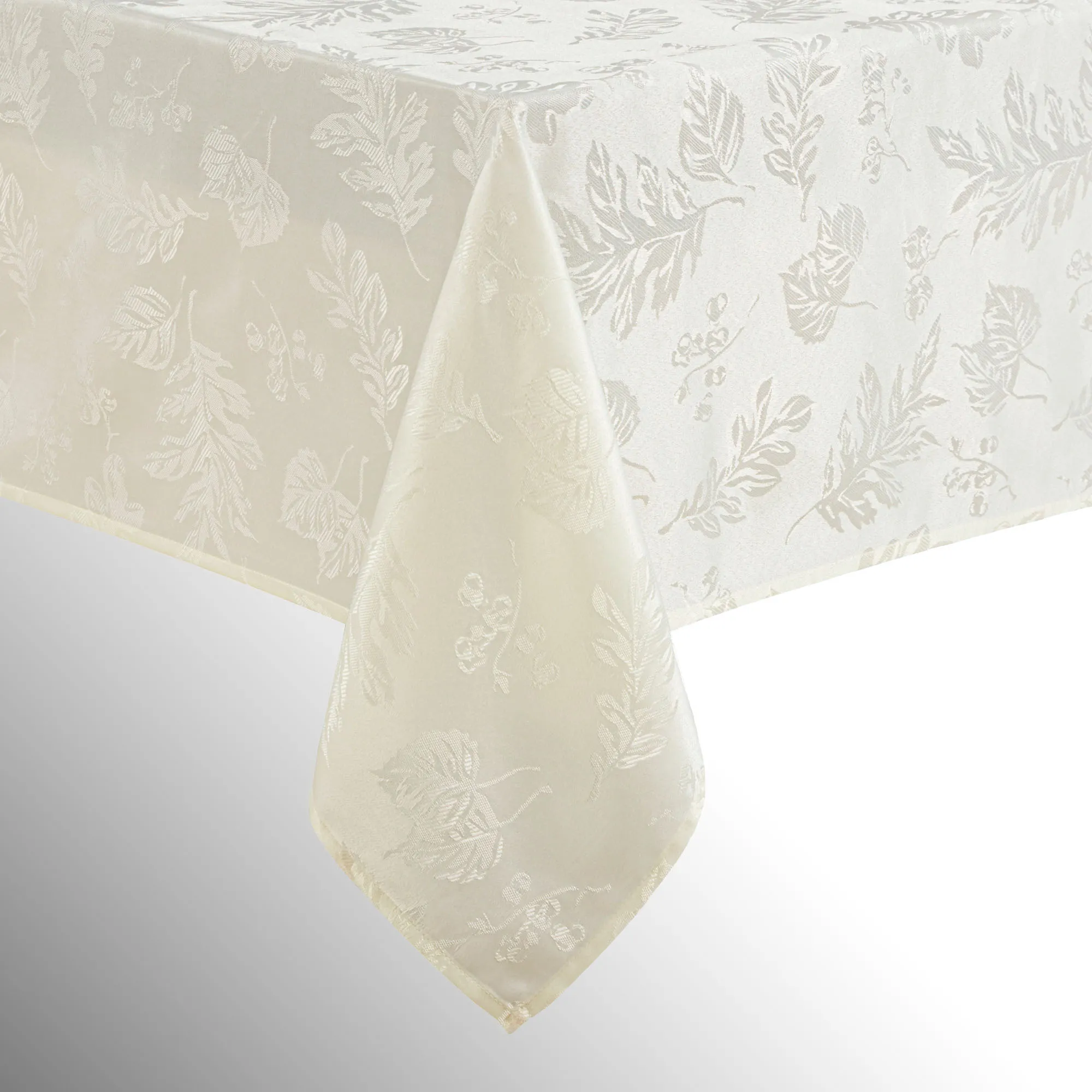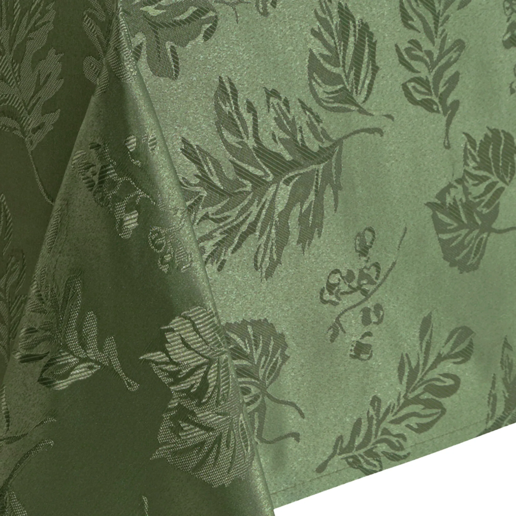 Graceful Leaves add a natural touch to your grand tablescape. In a solid tone-on-tone design, the jacquard-woven table linens feature lovely cascading leaves on a silky polyester fabric with tailored edges. Choose Rectangle Tablecloth, Round Tablecloth, Oval Tablecloth, or Napkin Set of 8. Machine washable. Imported.
