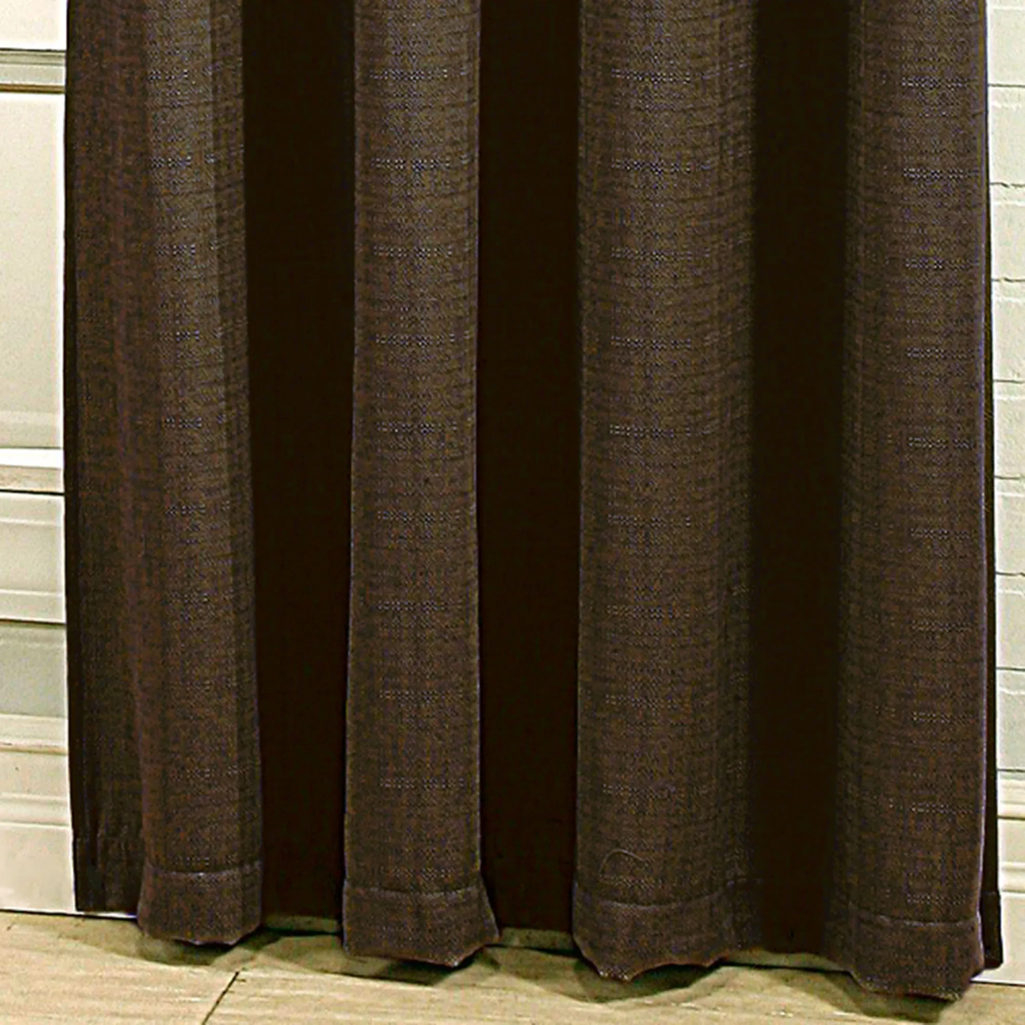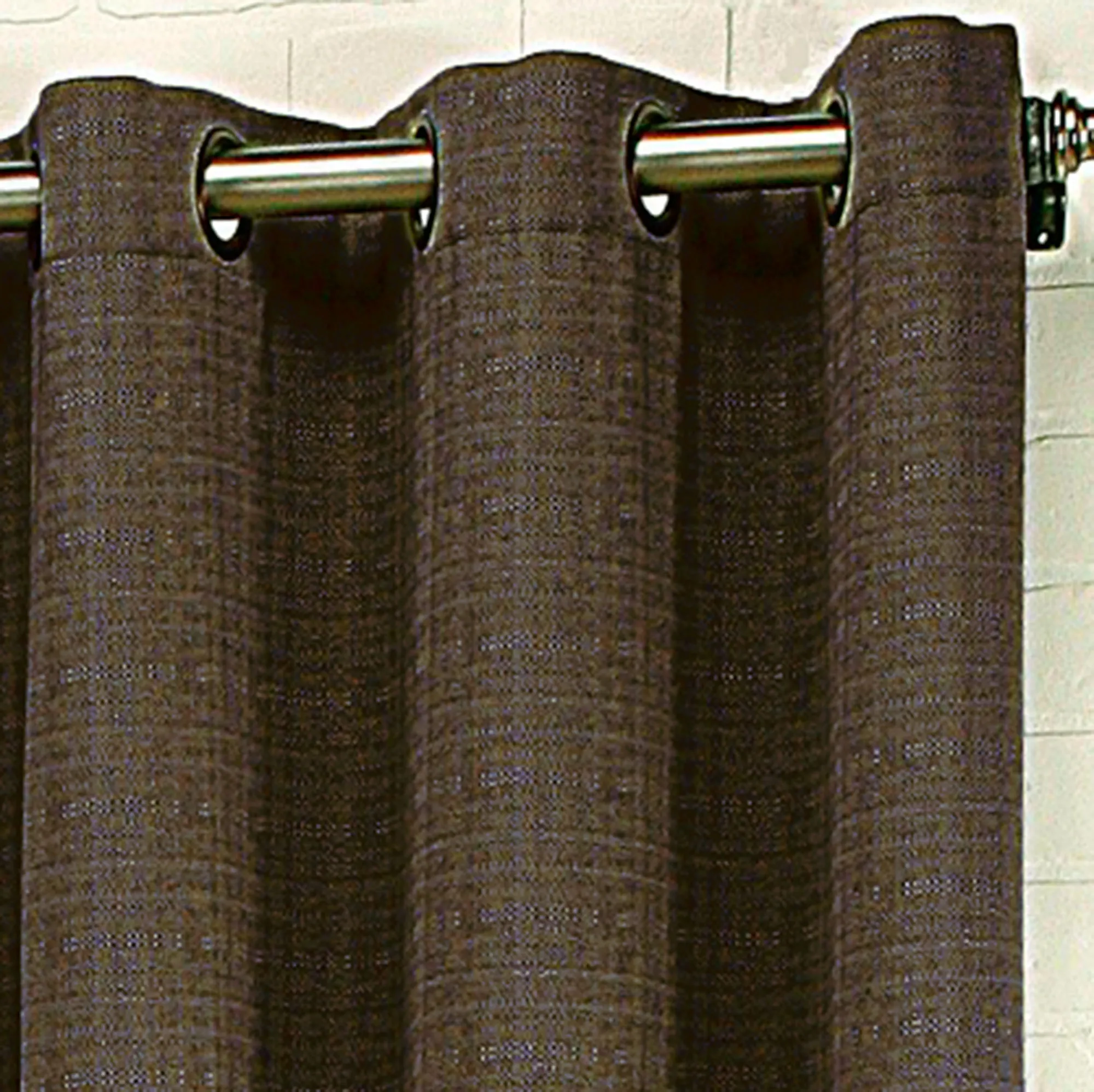 The Gramercy Grommet Curtain Panel adds a slightly contemporary feel to a casual design. Each polyester curtain panel features a textured weave and has eight antique gold/bronze, 1.5" dia. metal grommets. Each panel is 56"Wx95"L and is sold individually. Machine washable. Imported.