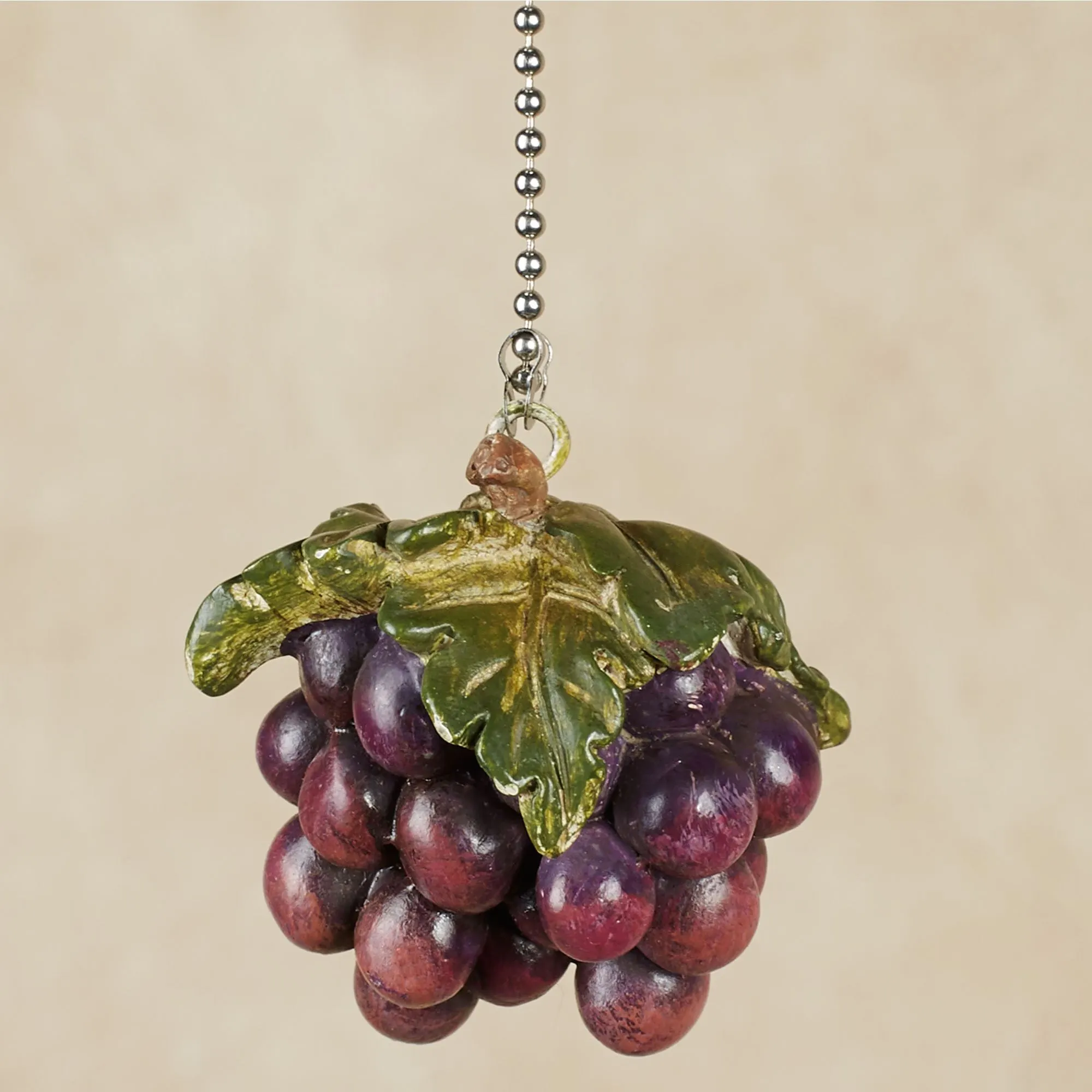 Wine lovers will cheer for the fruitful Grape Harvest Fan Pull. Made of resin, this handpainted, dimensional fan pull features lush sangria grapes. Fan pull is 2"Wx1.75"Dx2"H; metal pull chain measures 12.5" long.
