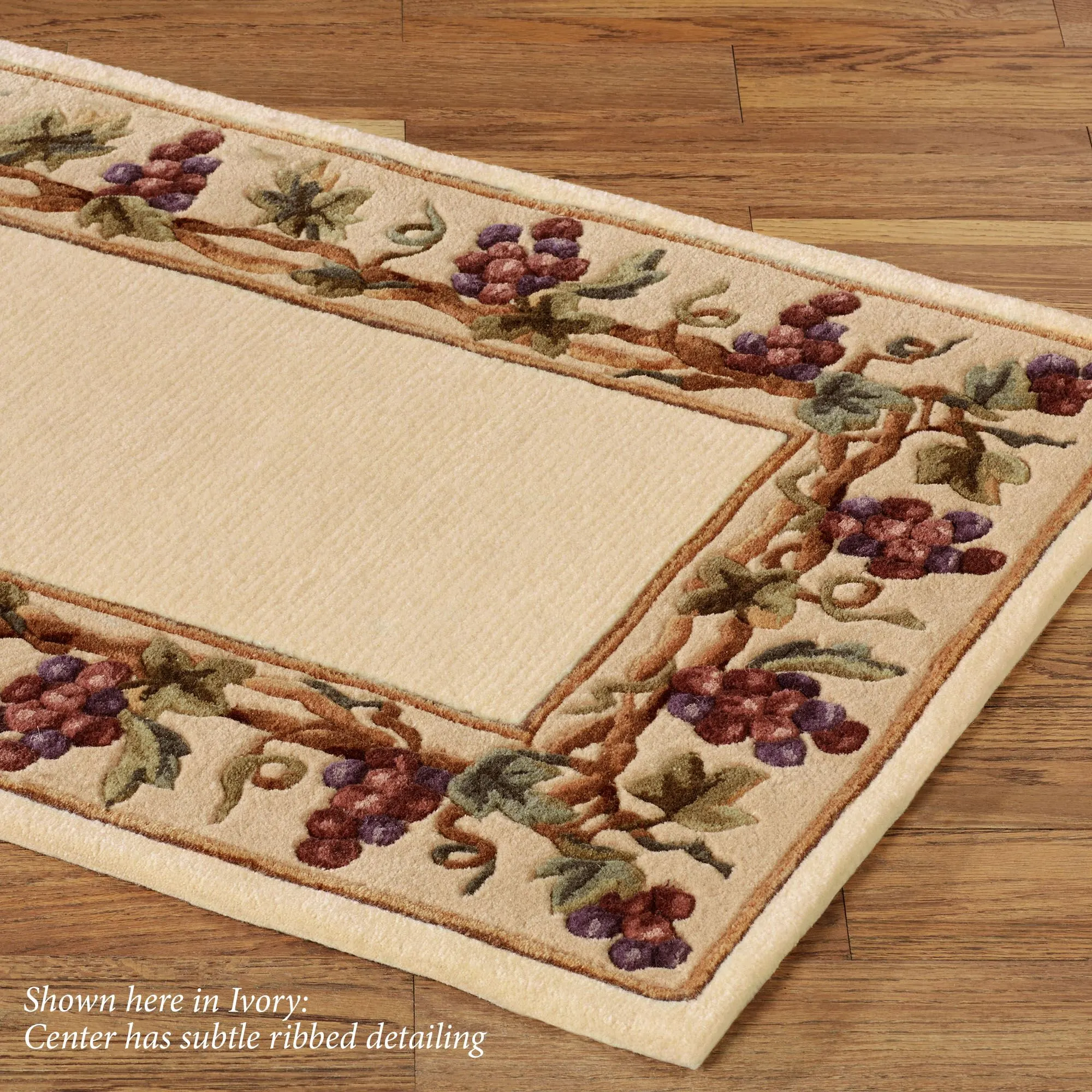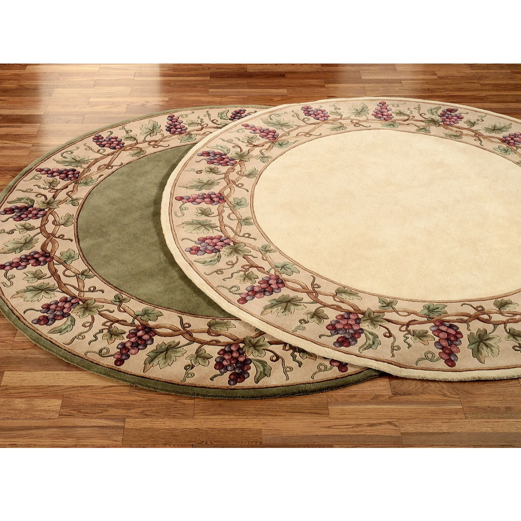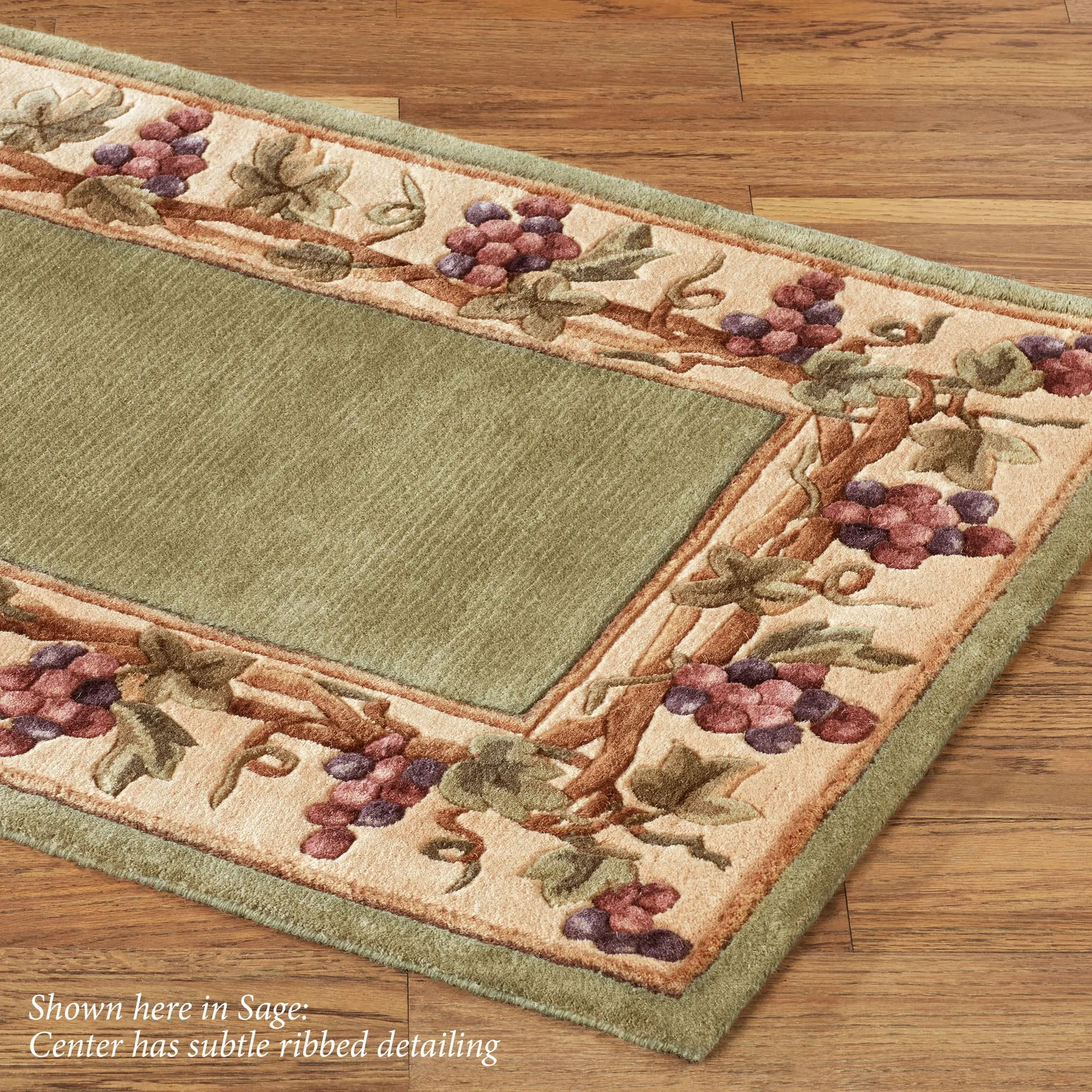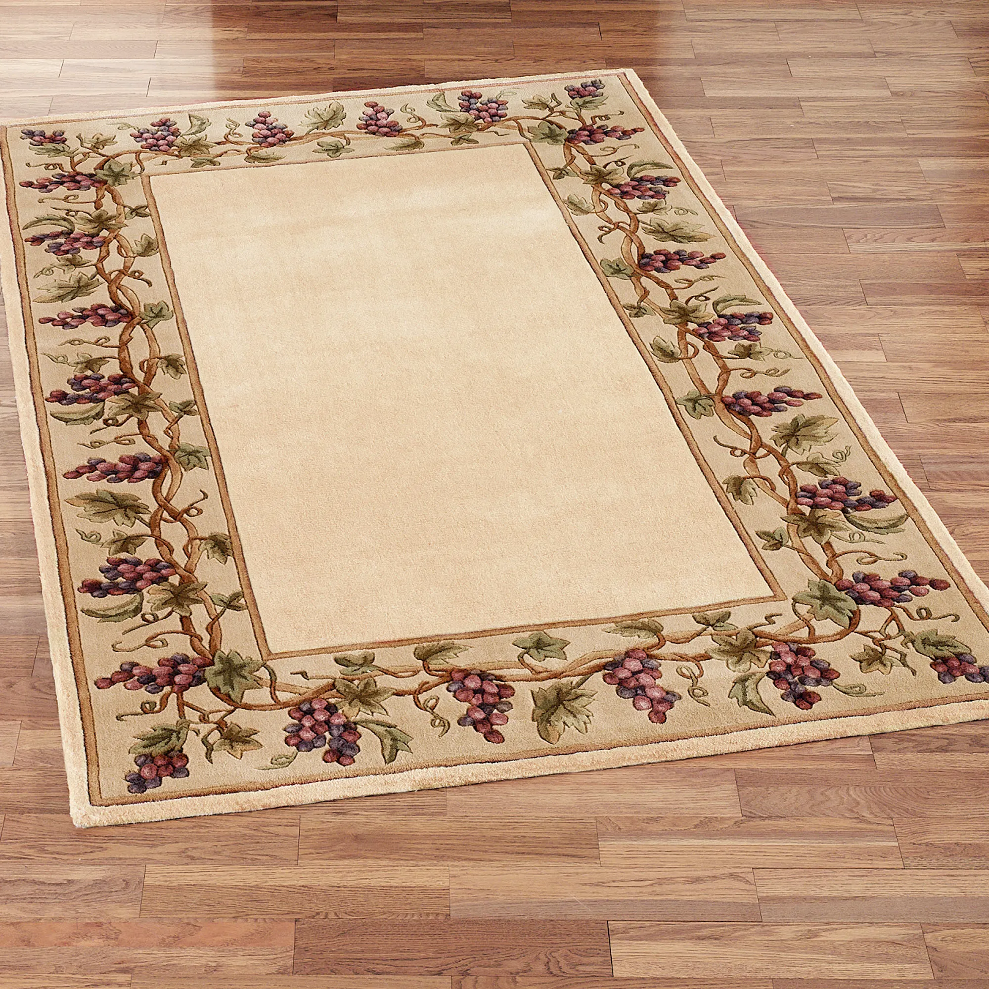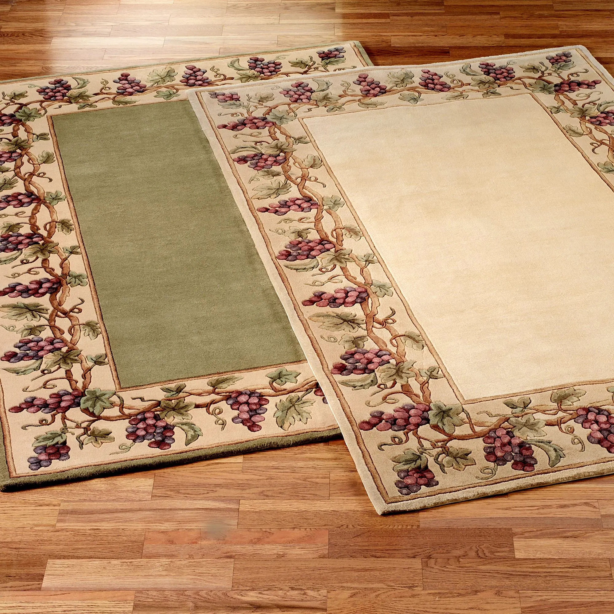 The Napa Grape Border Area Rugs are made from pure wool. Backs are cotton-covered latex. Imported.