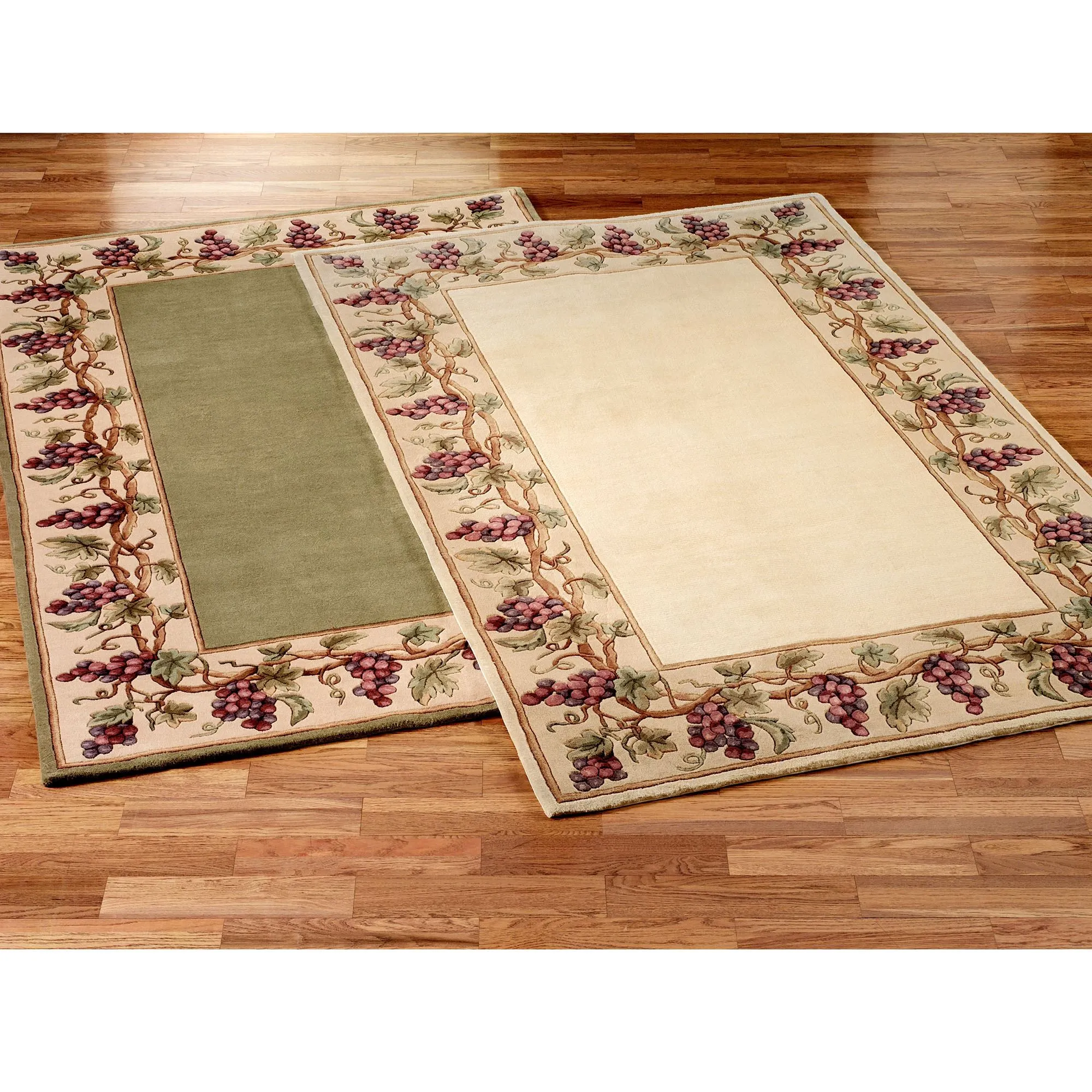 The Napa Grape Border Rugs are made from pure wool. Backs are cotton-covered latex. Imported.