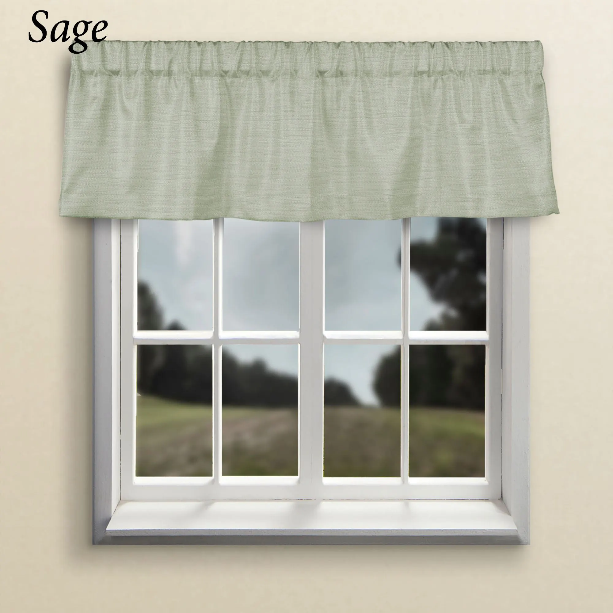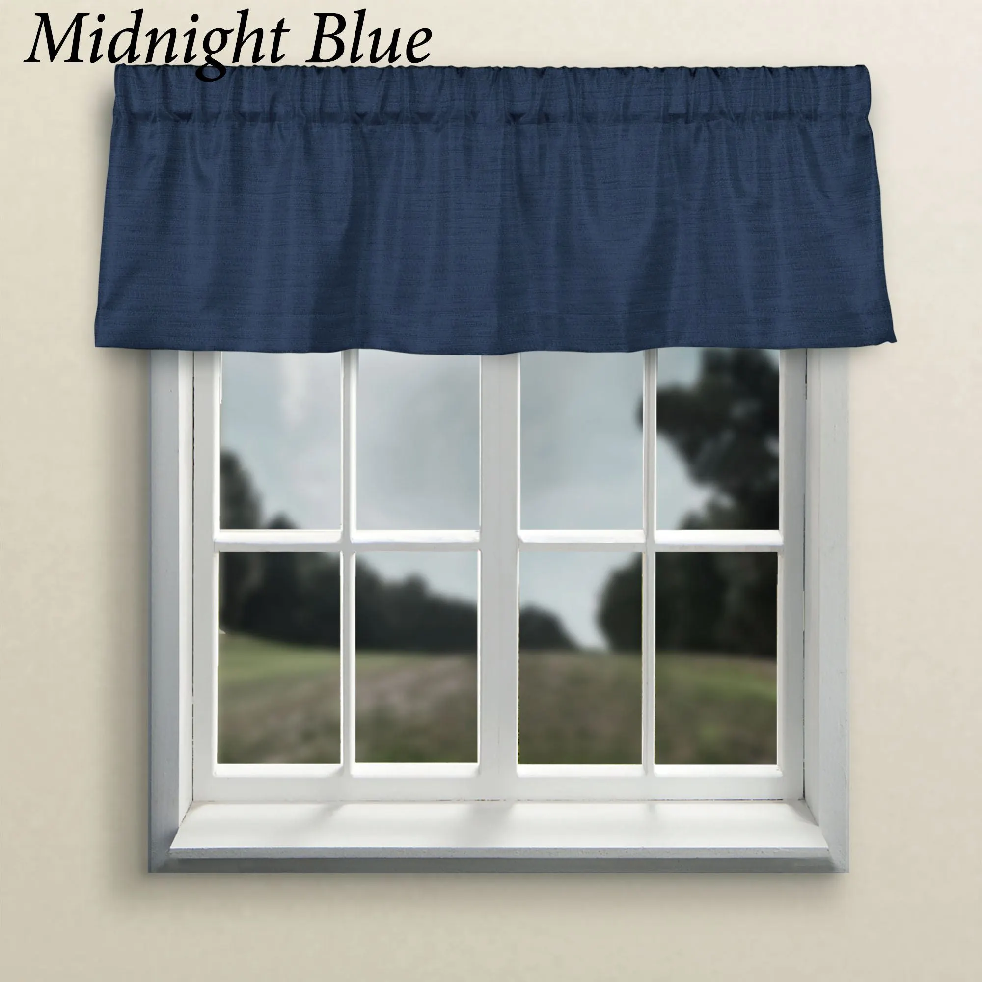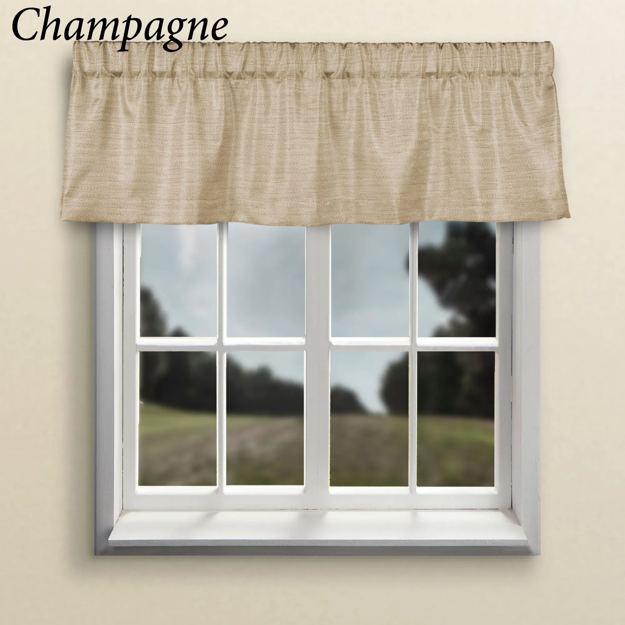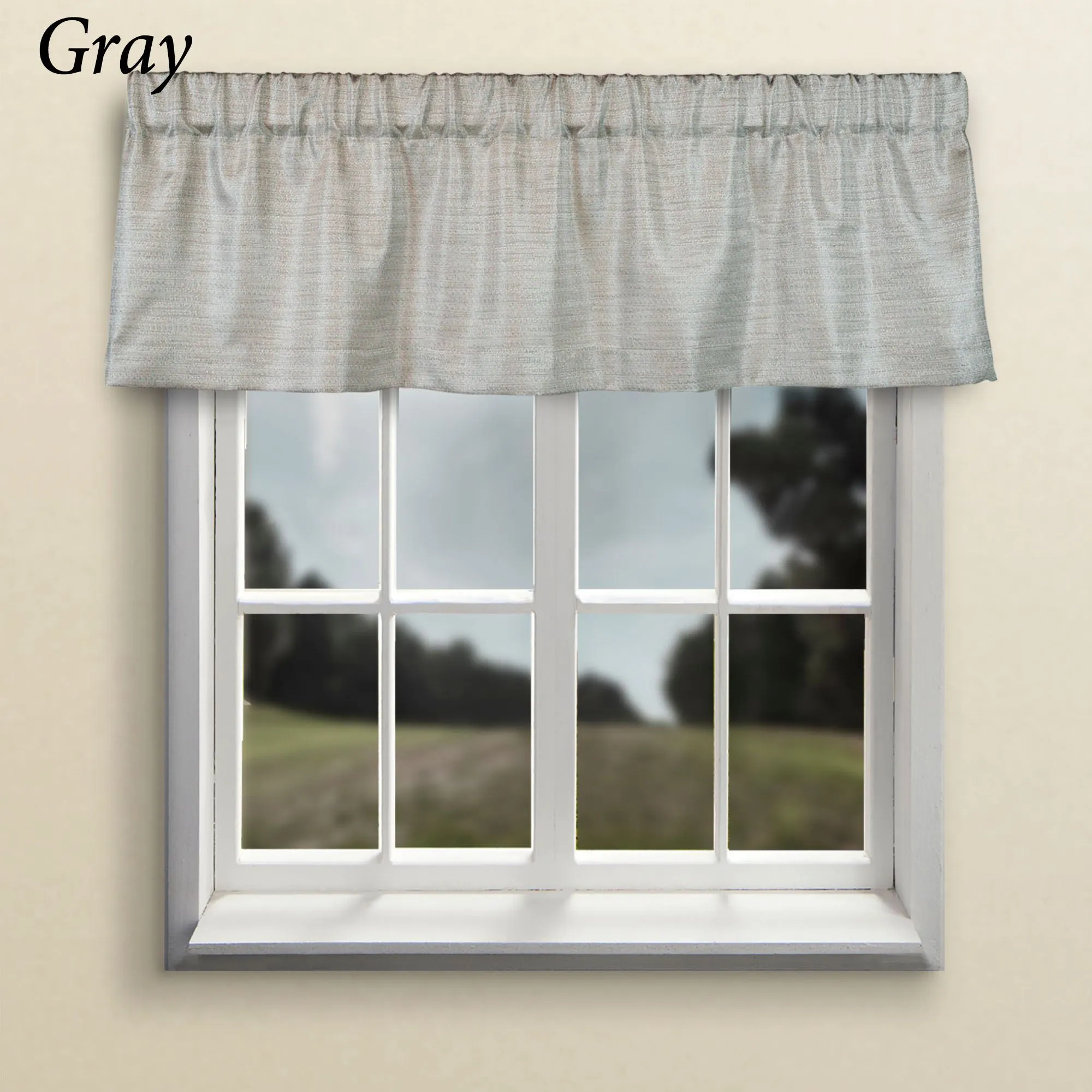 Adorn your window with the natural woven texture of Grasscloth with this unique valance. Made of polyester, this valance is a solid color with a slight metallic sheen and polyester/cotton lining. Specify Parchment, Champagne, Gray, Midnight Blue, Off-White, or Sage. Tailored valance has a 3" rod pocket and is 54"Wx15"L. Machine washable. Imported.