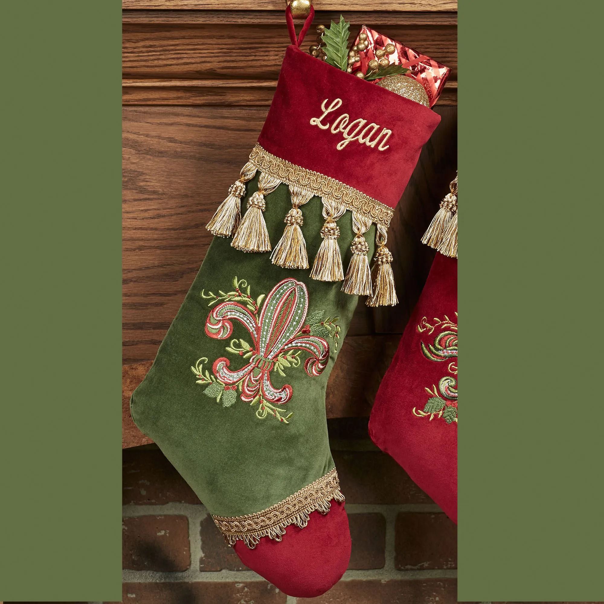 Fleur de Lis Embroidered Cotton Velvet Christmas Stockings