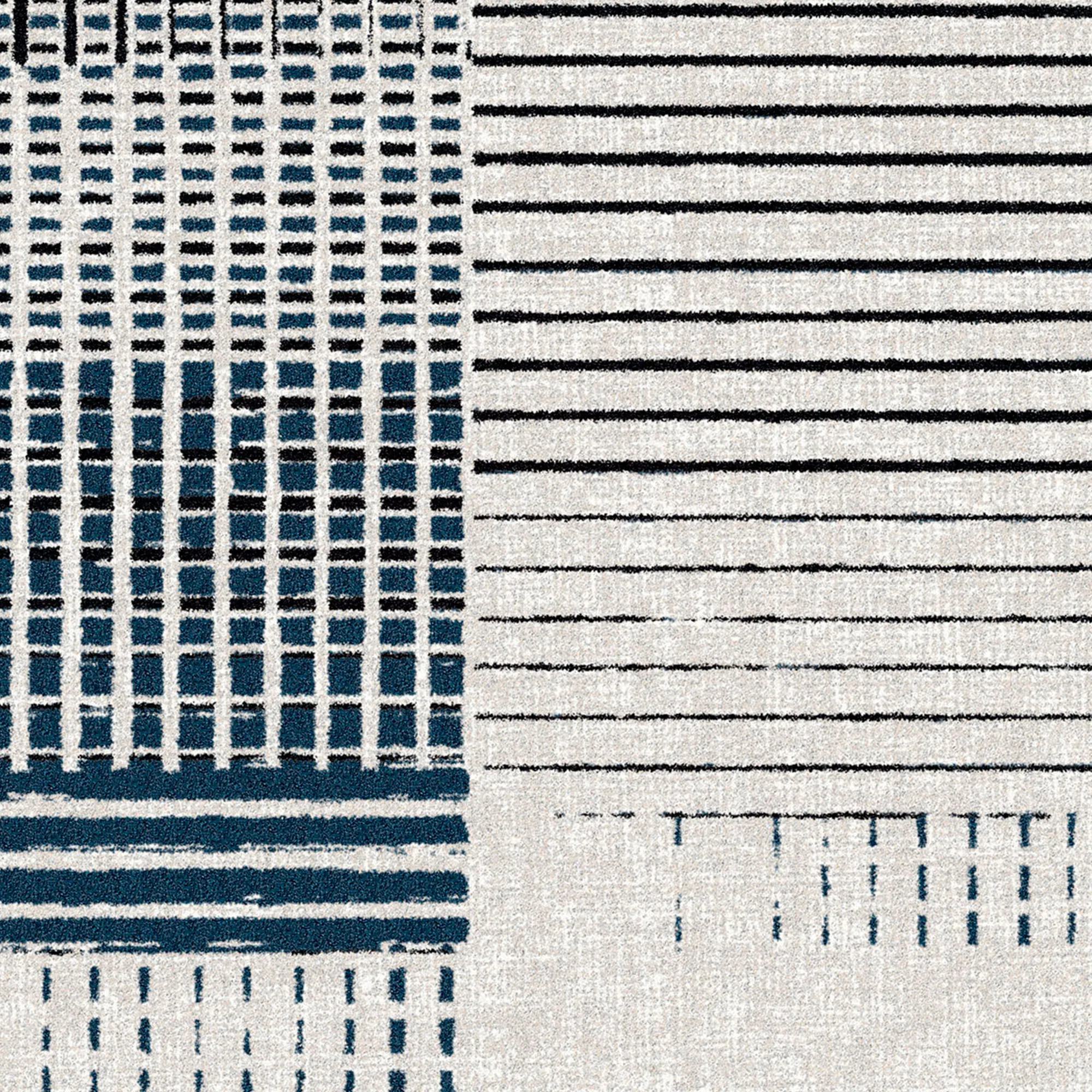 Gridlox Blue Geometric Linear Stain Resistant Area Rugs