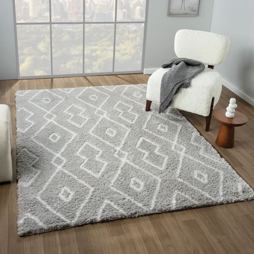 Gwen Gray Geometric Ultra Soft Plush Shag Style Area Rugs
