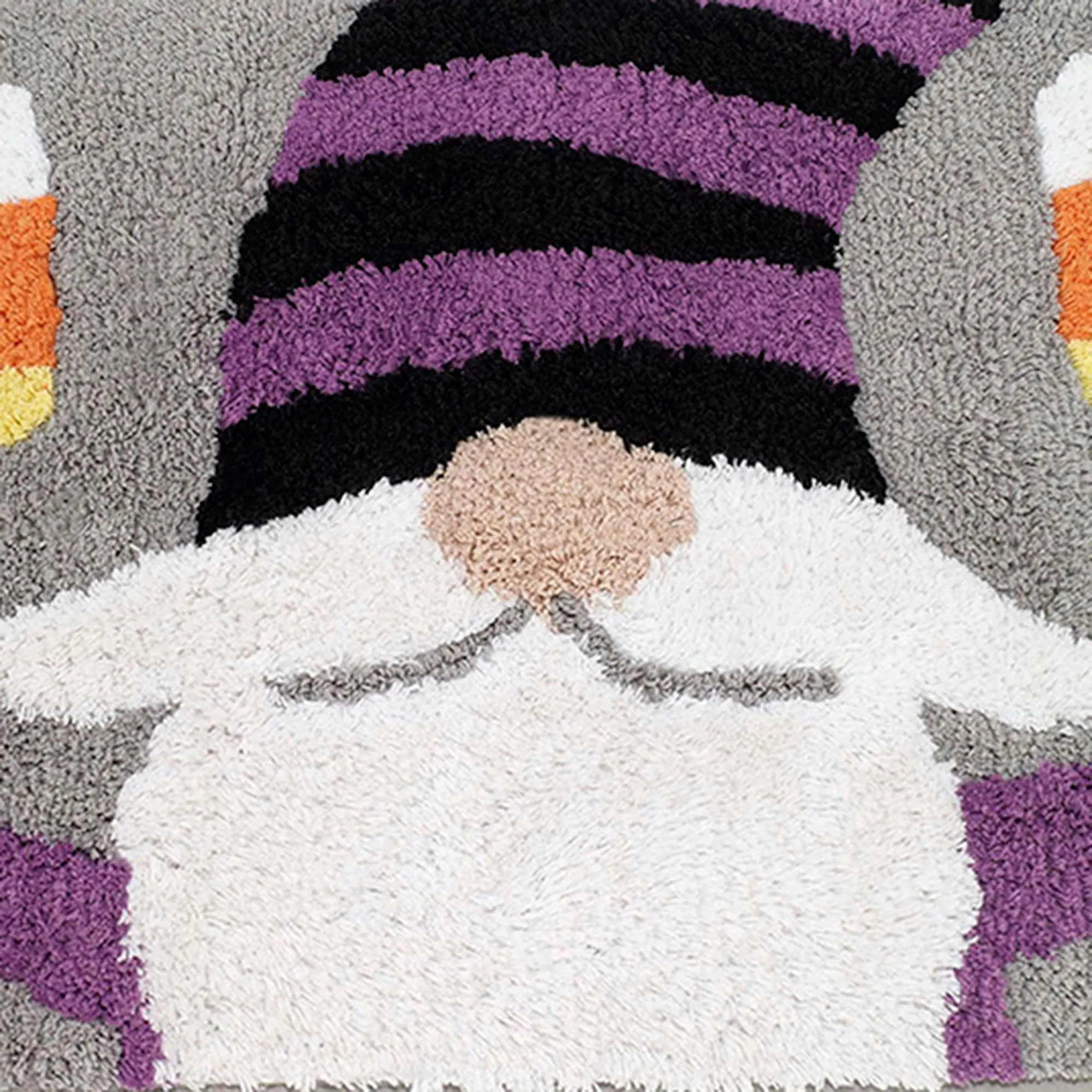 Be sure to display the Halloween Gnome Bath Set during the haunted holiday season. Colors include shades of purple, black, orange, white, and gray. The bath set includes a bath rug and a lotion/soap dispenser. The tufted cotton Halloween bath rug, .5" thick, features a gnome tossing two pieces of candy corn. Backing is nonskid latex. The rug is perfect in any bathroom, kitchen, or mudroom. Measures 32"x20". Machine washable. Imported. The handpainted resin lotion/soap dispenser features a gnome holding a pumpkin with spiders. Measures 3.5"Wx4"Dx8"H.