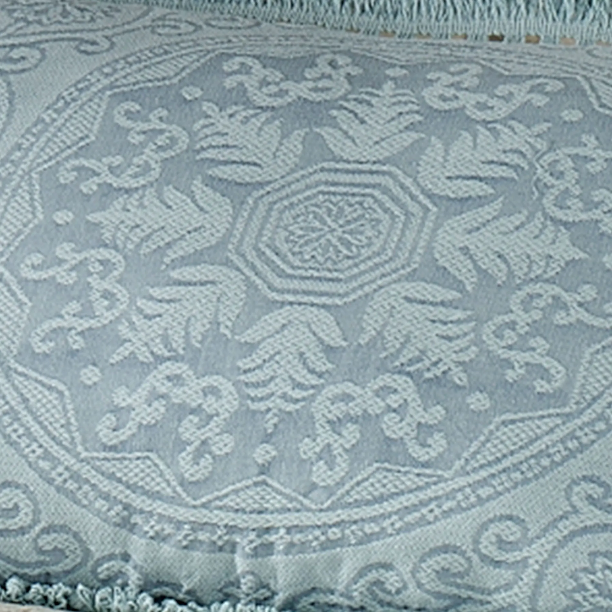The lightweight, cotton/polyester Hampton Woven Bedspread provides a simple but elegant look in your bedroom. Bedspread features a woven center medallion on the top, surrounded by floral scrolls. The 21" drop has floral medallions with a scrolling border. Bedspreads have cotton fringe on three sides. Bedding is machine washable. Imported.