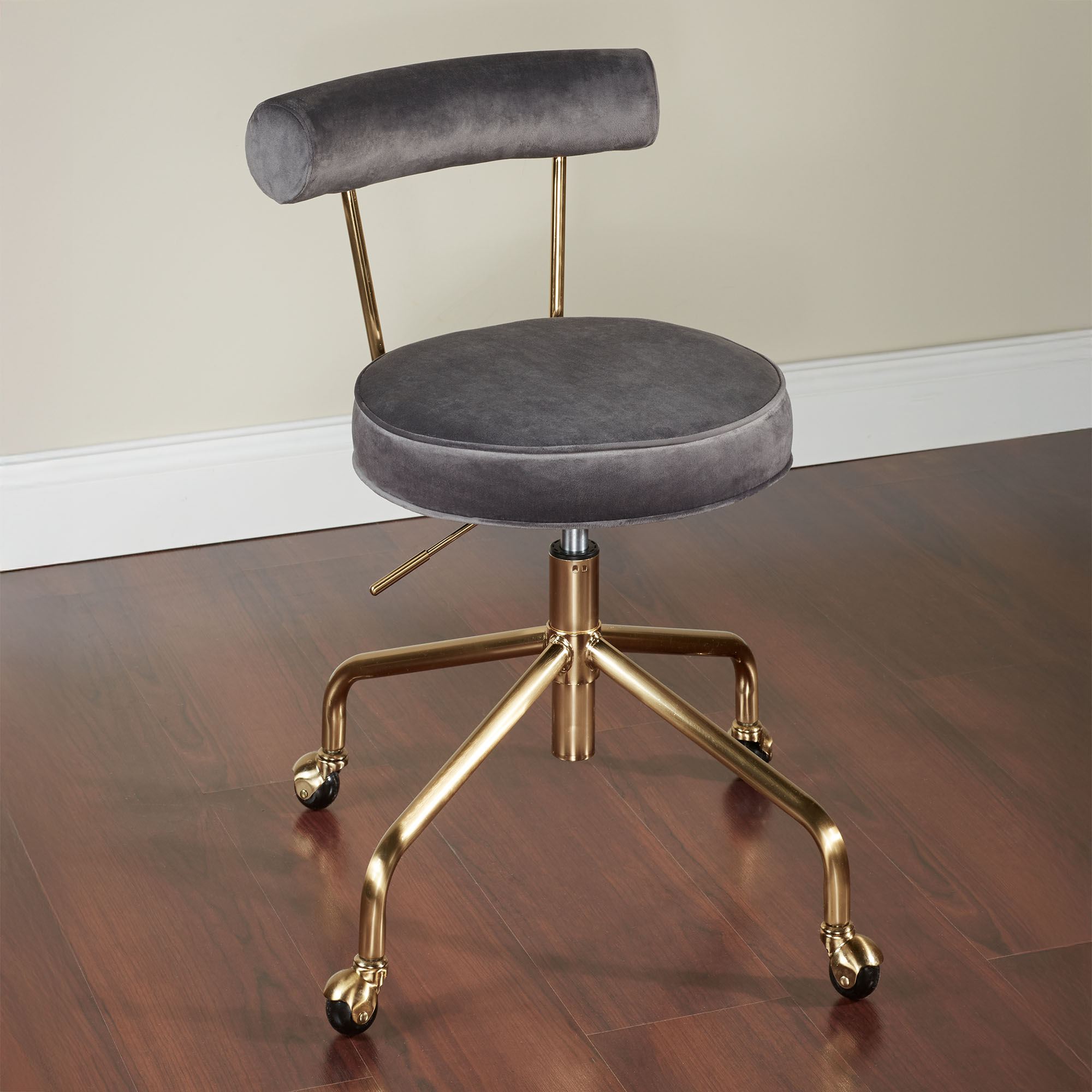Hannah Adjustable Gray Velvet Upholstered Metal Vanity Chair with Caster Wheels