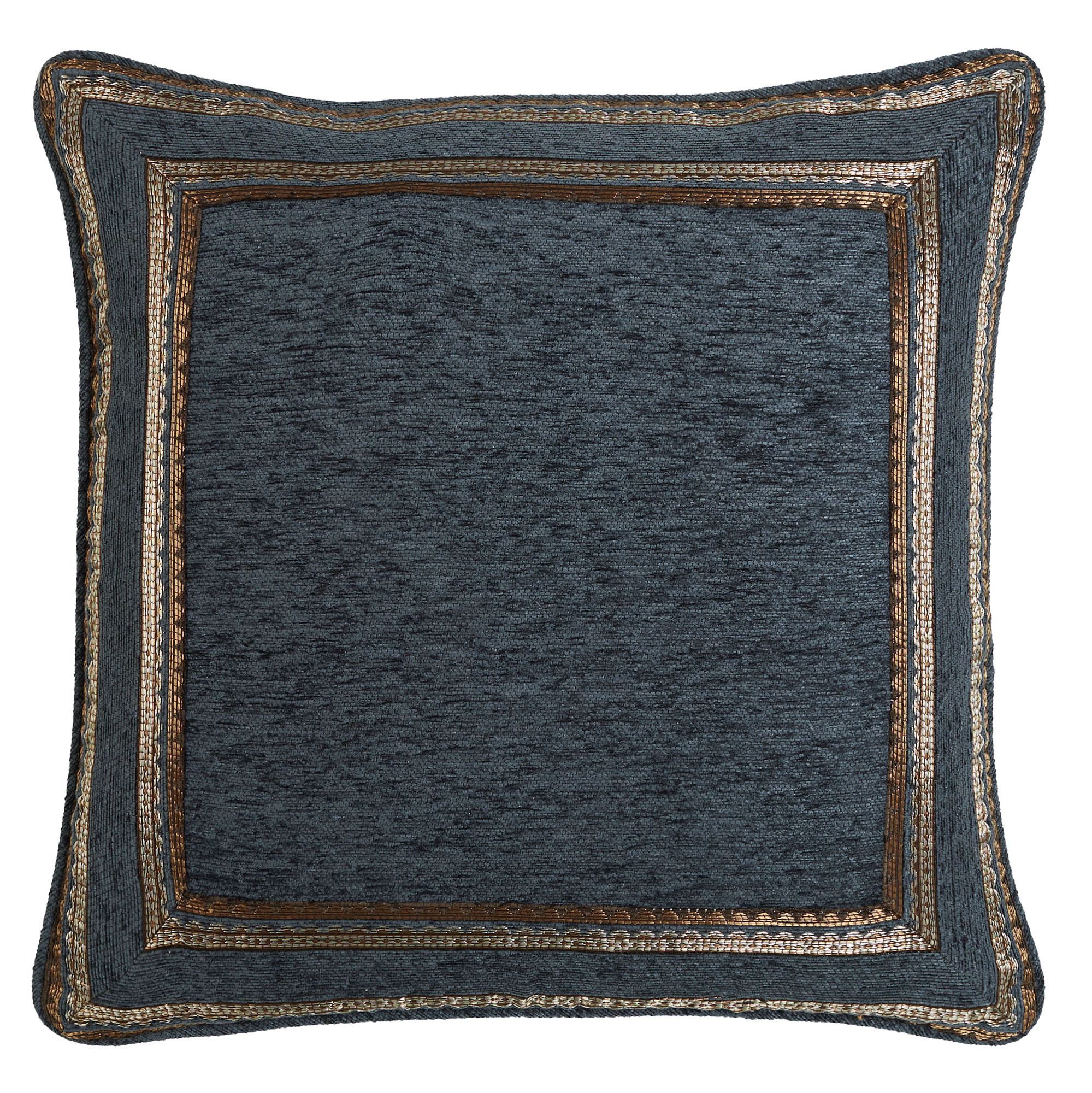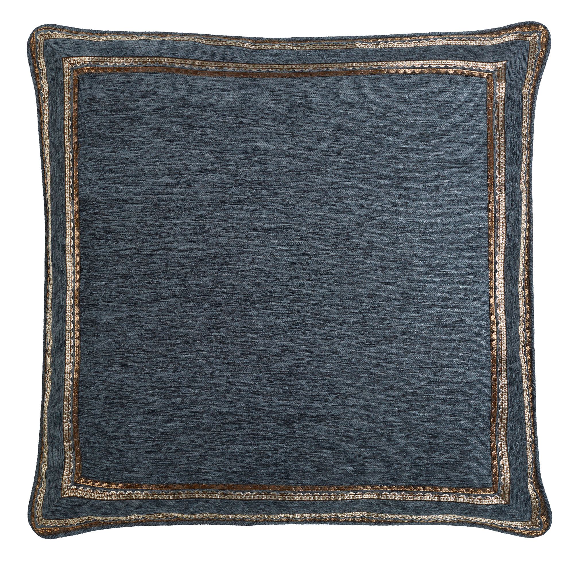 European Sham is blue chenille framed in coordinating mitred stripes and piped edges; reverses to solid blue chenille; zipper closure. The European sham may be monogrammed for an extra charge. We recommend monogramming in the Gold thread color.