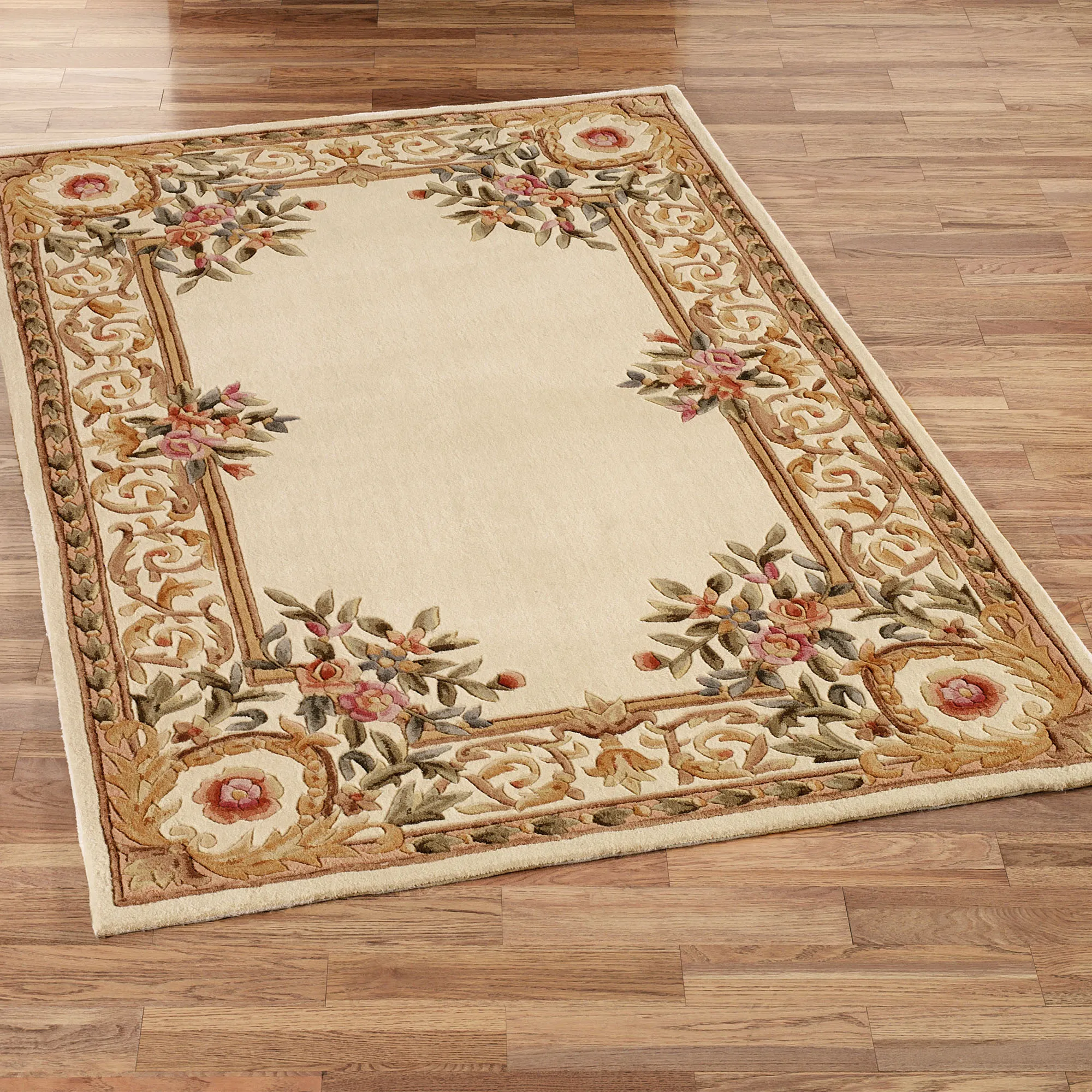 The Harmony Border Area Rugs have a handsome, traditional style that is well-suited to the decor of many homes. Hand-tufted, .5" thick wool area rugs feature an open field, handcarved borders, and floral designs; all rendered in your choice of rich, tasteful color schemes. We recommend professional cleaning by a rug cleaner. Imported.