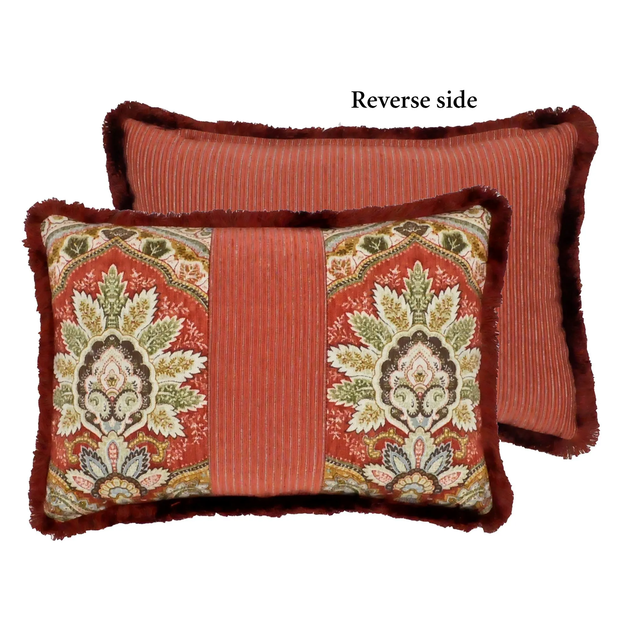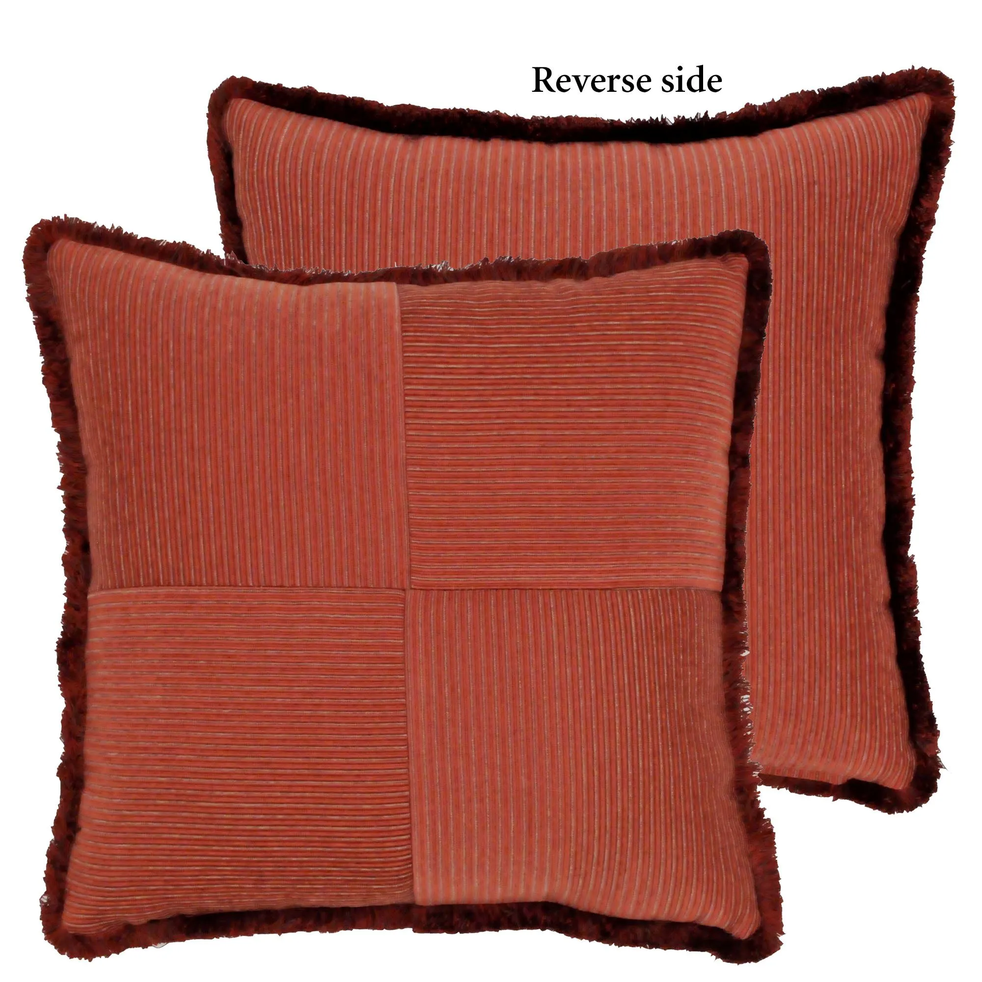 Pillows have hidden zipper closures. Spot clean. Fringed 18" Square has a diamond geometric face and a striped reverse accented with chenille. The reversible Corded 18" Square mimics the comforter's design with twist cording edges. Fringed 19" Square contains a pieced striped face and reverses to solid stripes. Fringed Rectangle is pieced with a striped center and comforter-match sides; reverses to stripes.