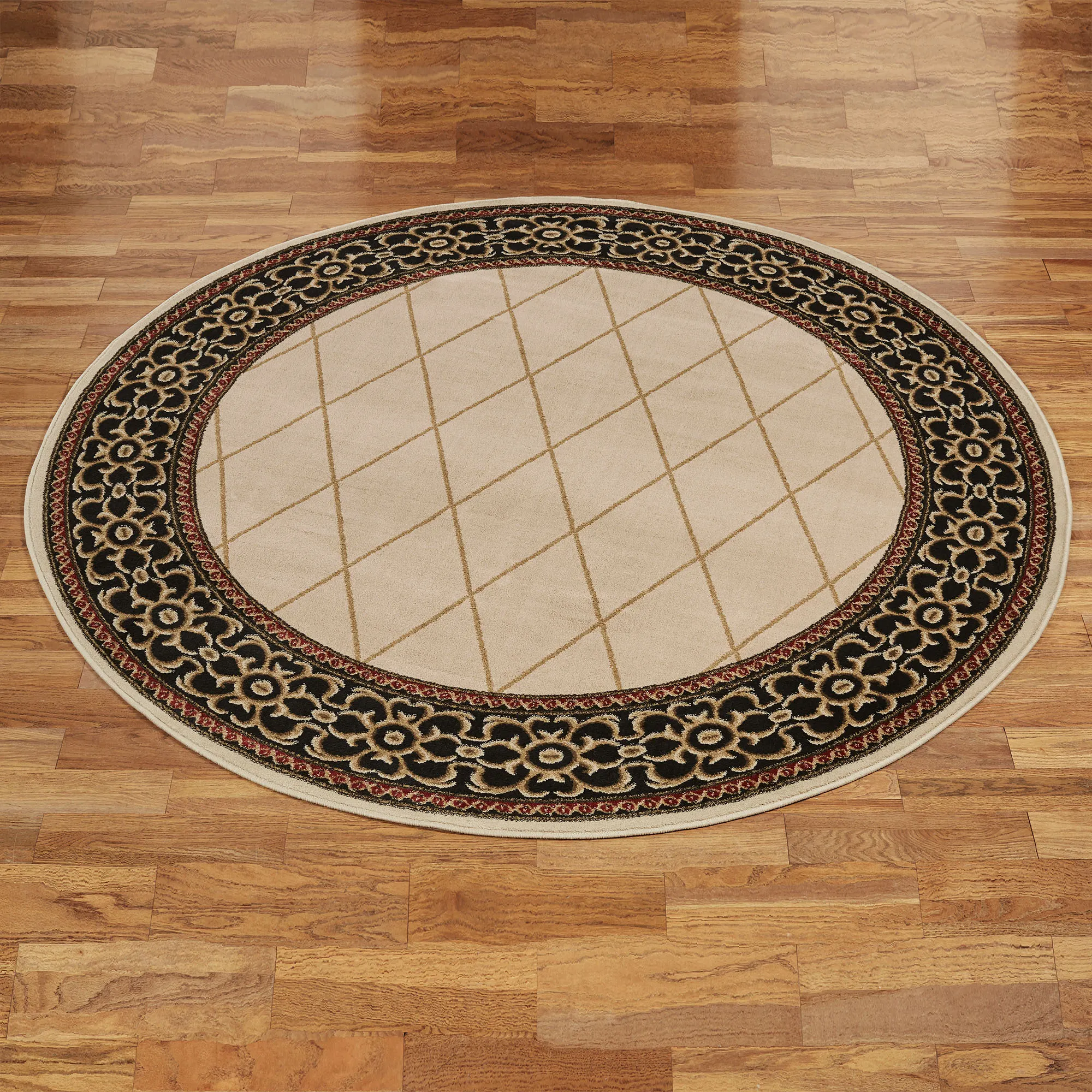 • Lattice round rug has a timeless, traditional style