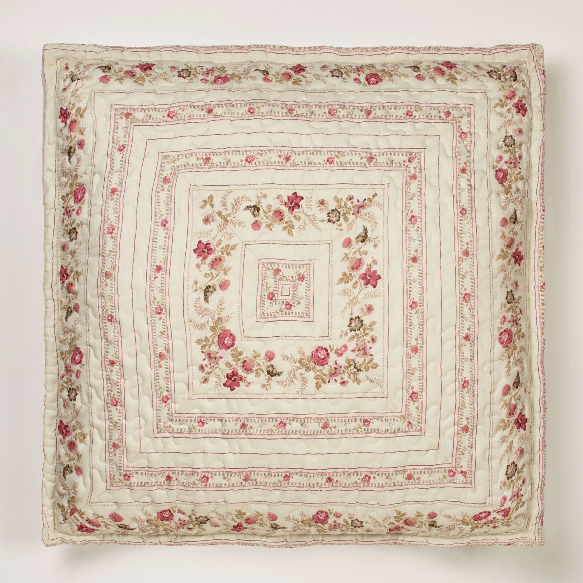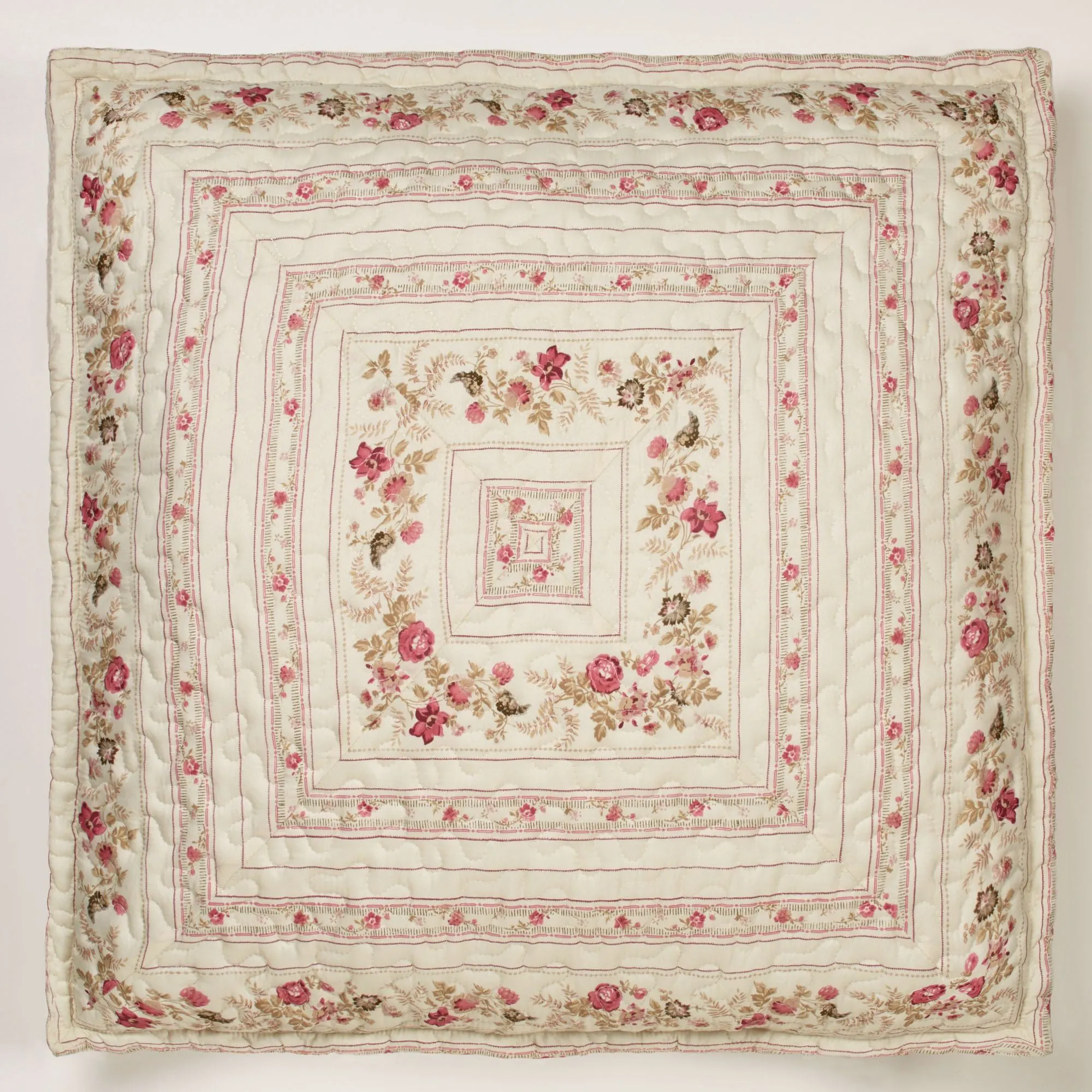 European Sham has mitred coordinating stripes and mini florals surrounded by a mini flange; French back closure.