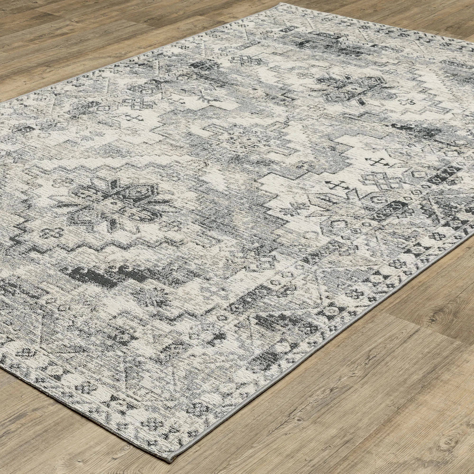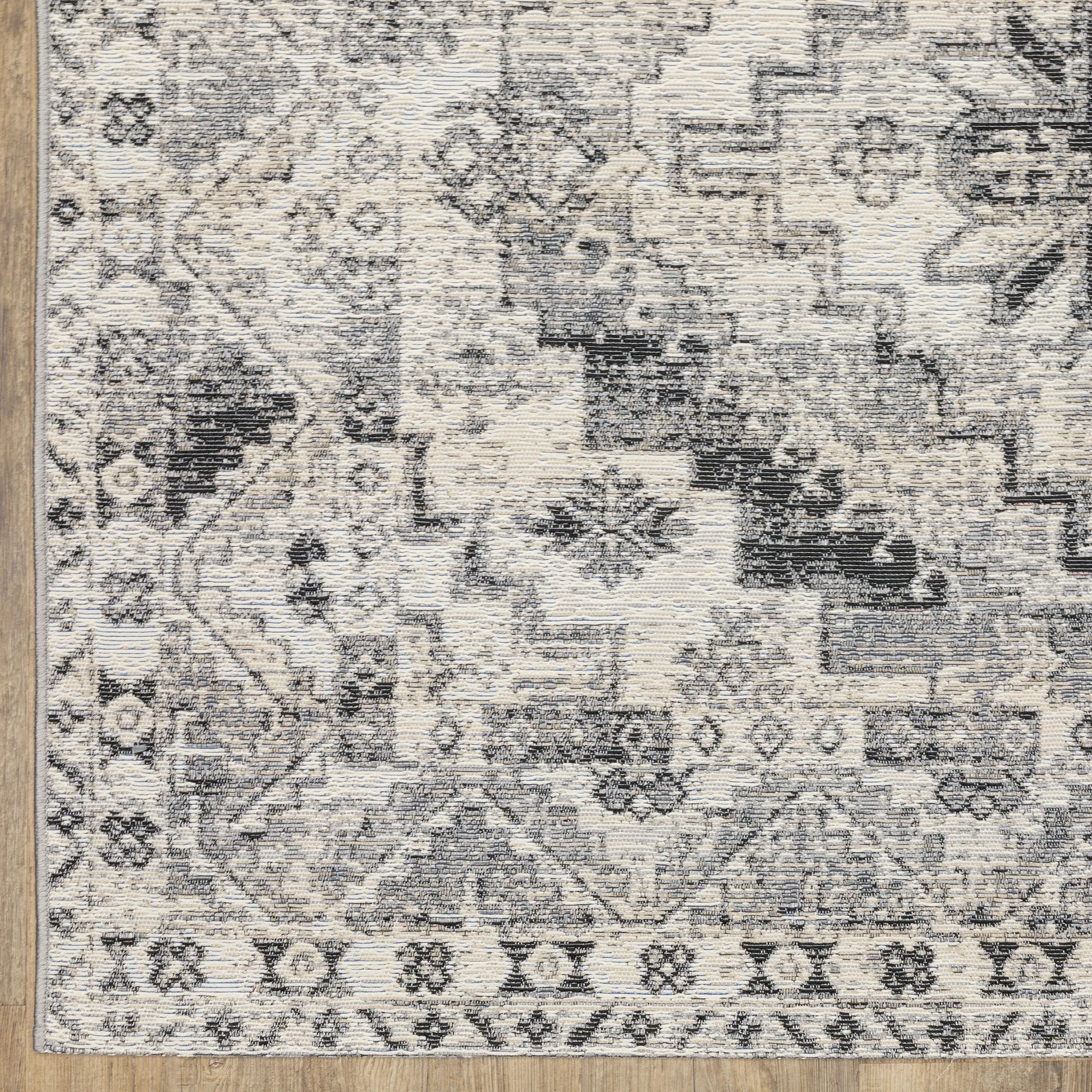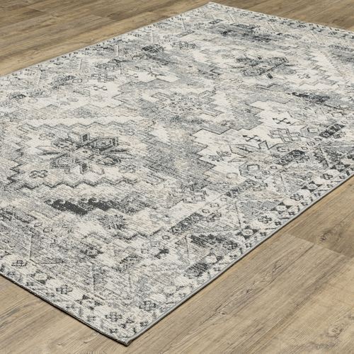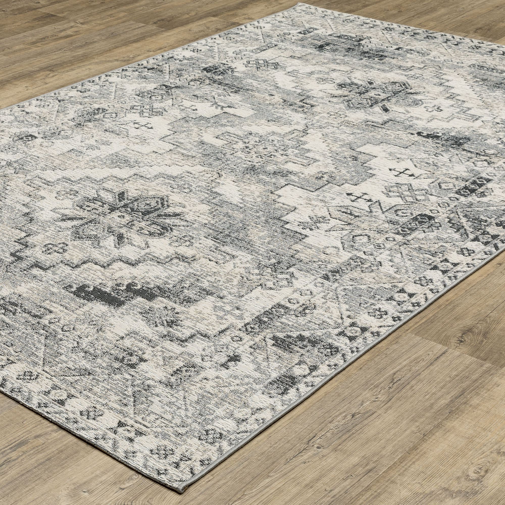 Helene Ivory and Gray Ornate Indoor Outdoor Rugs