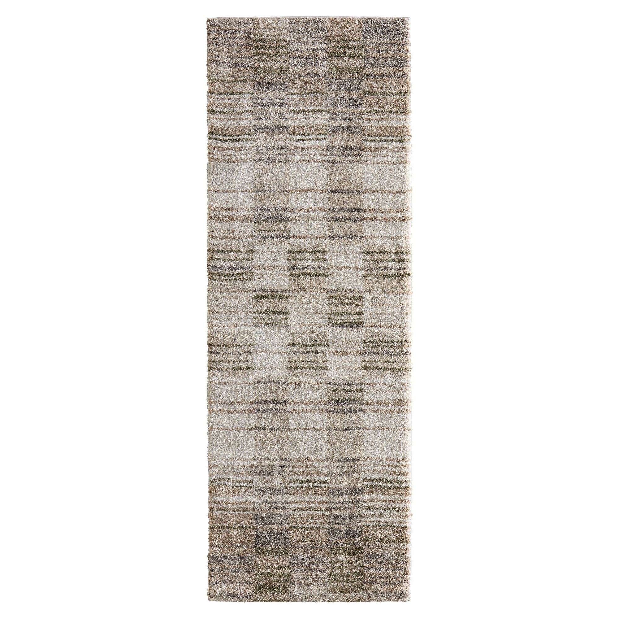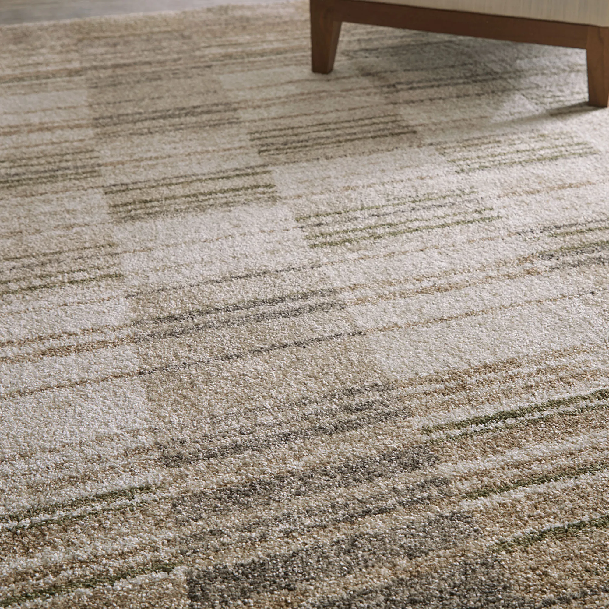 The plaid pattern on the Henrik Rug decorates with simple elegance. This power-loomed polypropylene area rug, .94" thick, features geometric plaid designs. Neutral colors include shades of brown, gray, ivory, tan, beige, and taupe. Backing is jute. We recommend professional cleaning by a rug cleaner. Imported.
