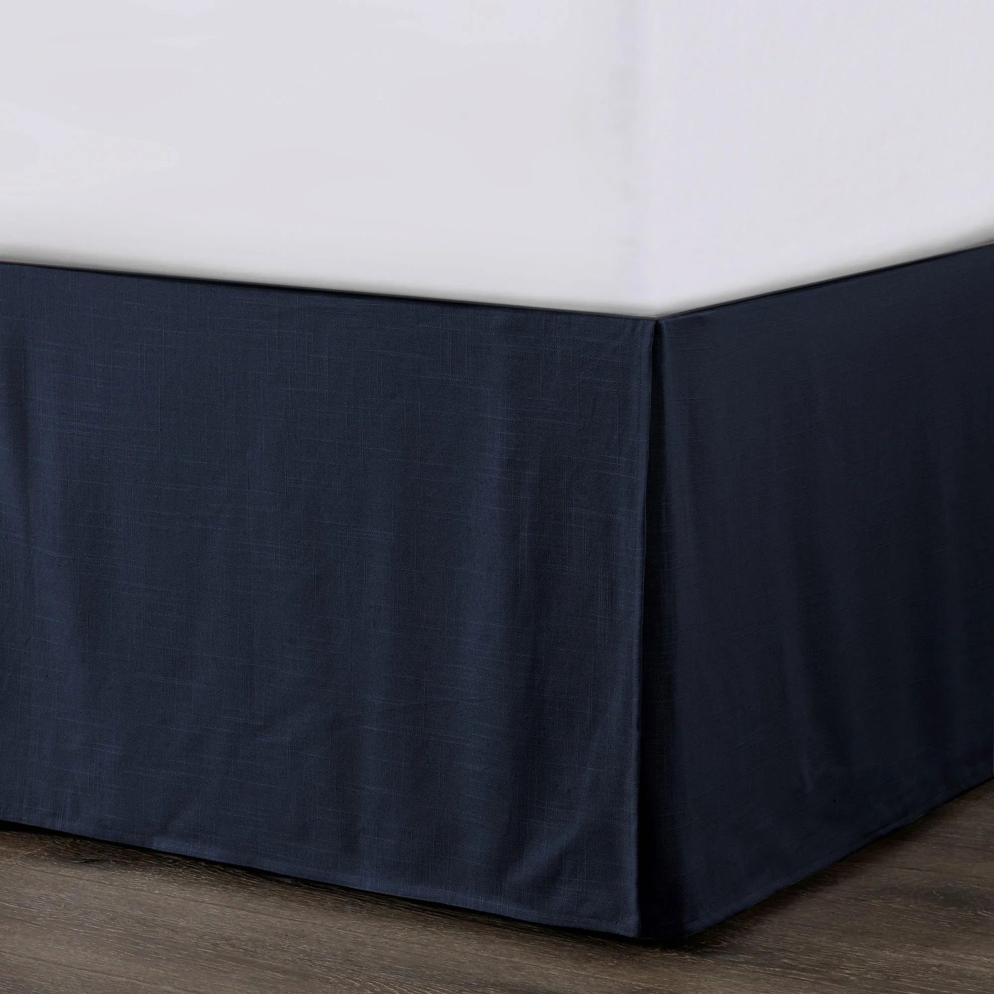 Also available: The Bedskirt has kick pleats and split corners in the 18" drop. Choose Queen or King.
