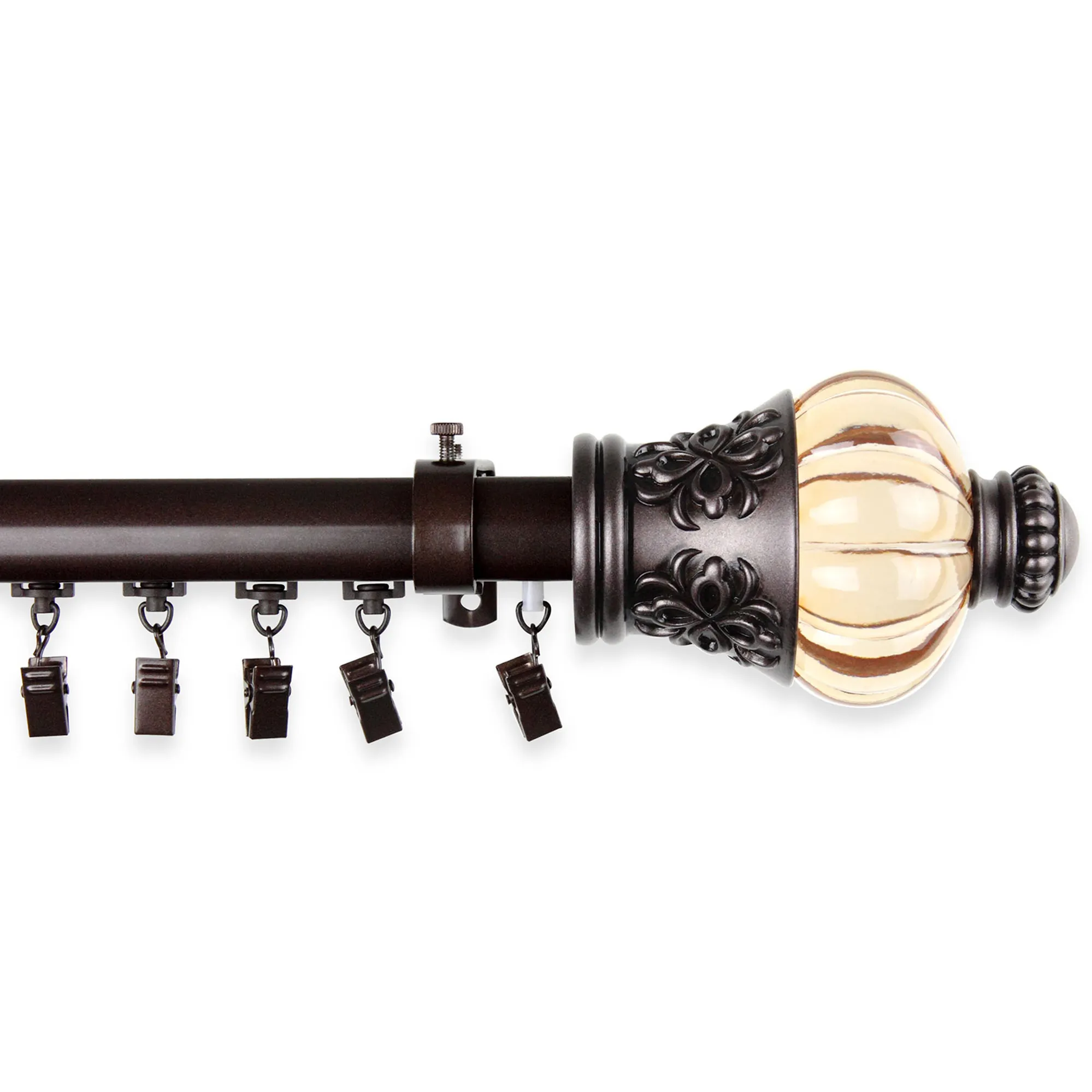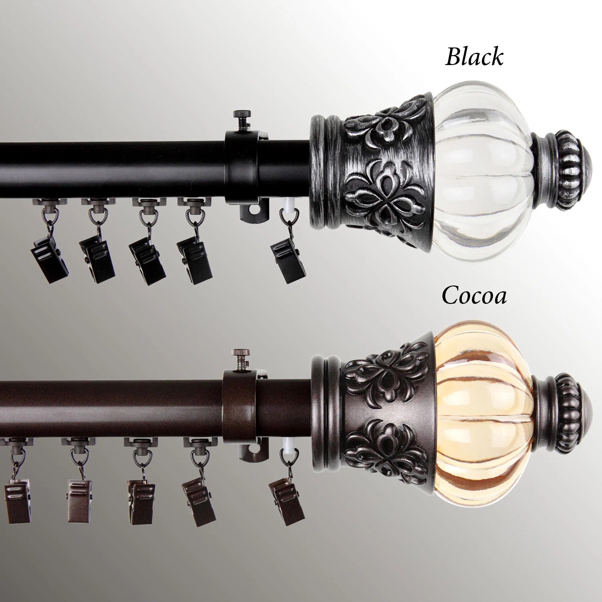 Heritage Decorative Traverse Curtain Rod and Finial Set with Sliding Clips