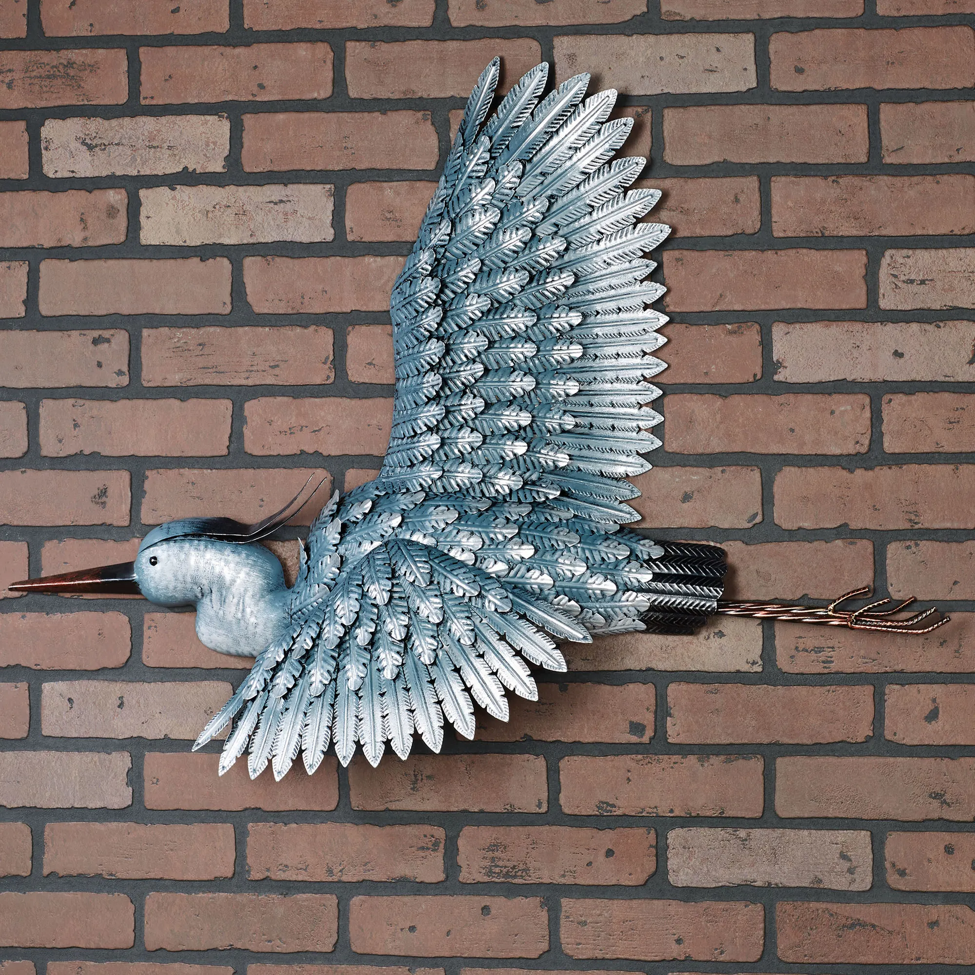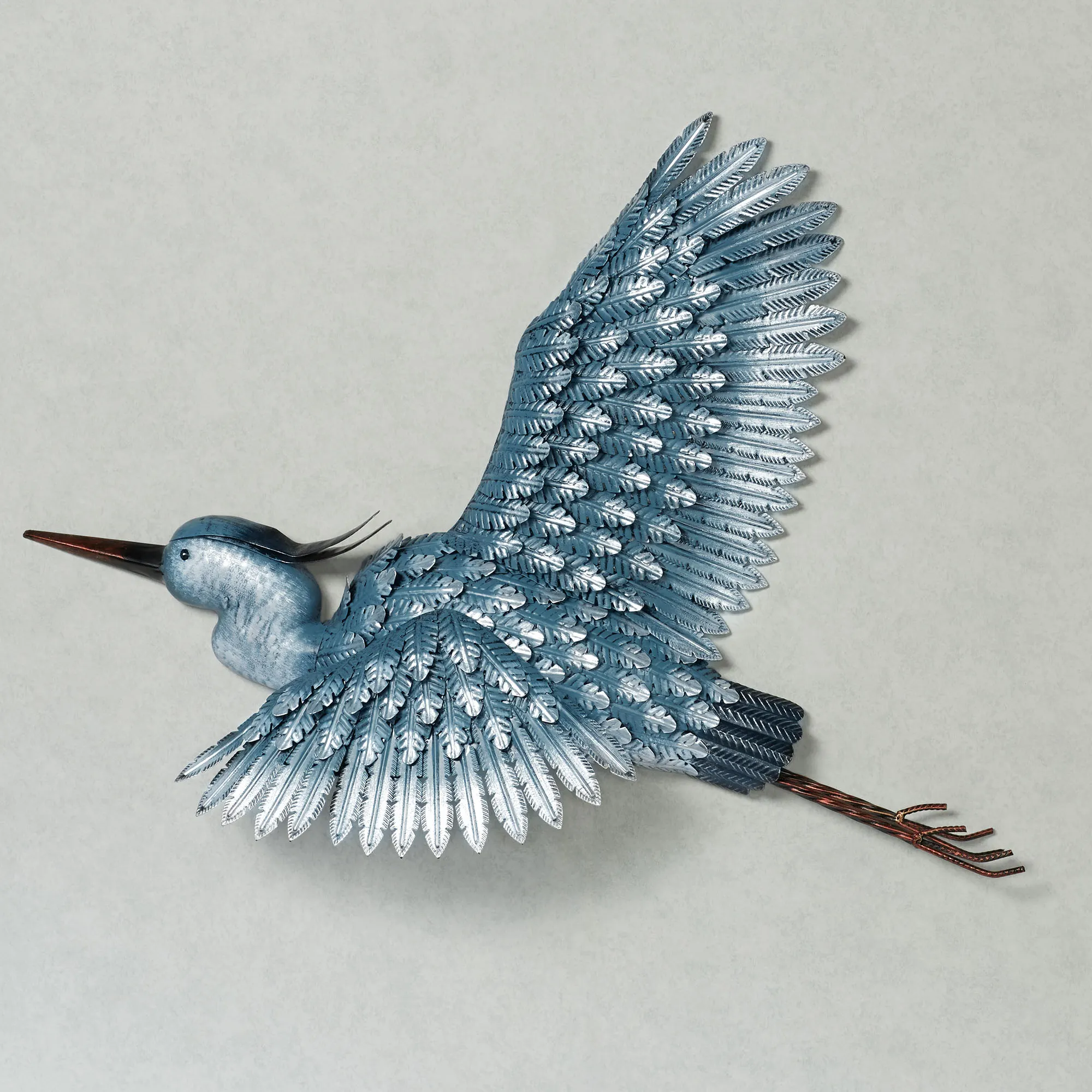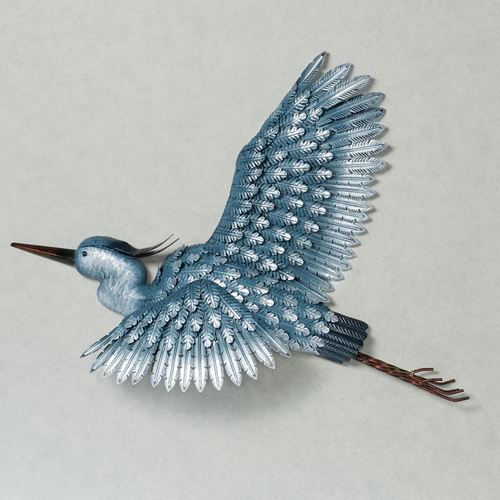 • Handcrafted heron wall sculpture