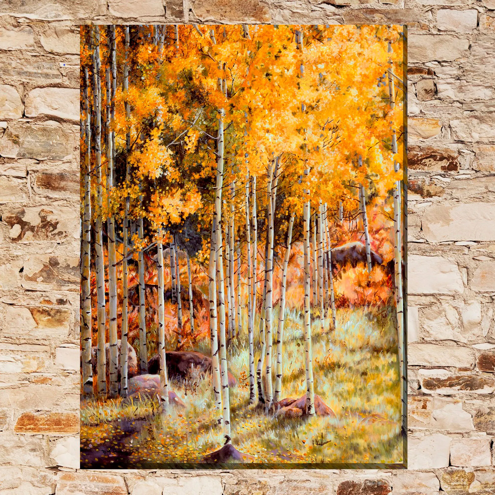 • Features aspen trees in an autumn setting