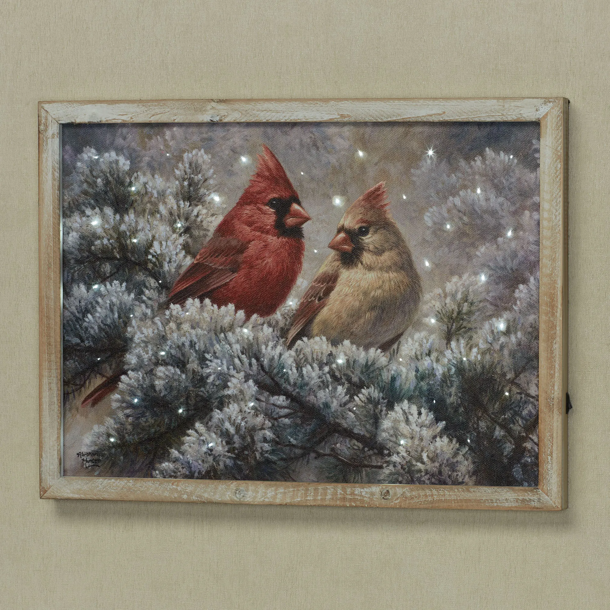 Holiday Cardinals Fiber Optic Lighted Framed Canvas Wall Art
