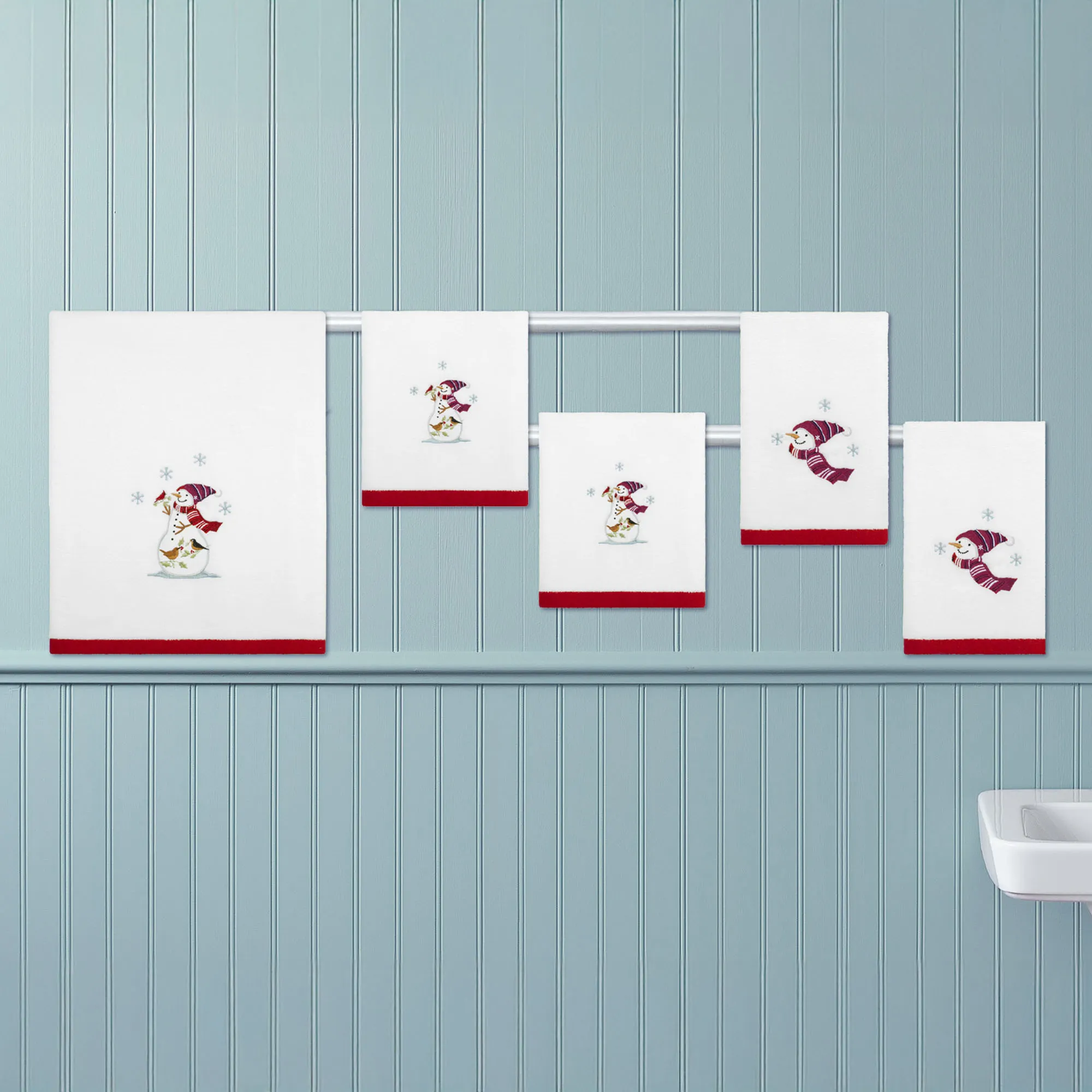 Holiday Cheer Embroidered Snowman 5 pc Bath Towel Set