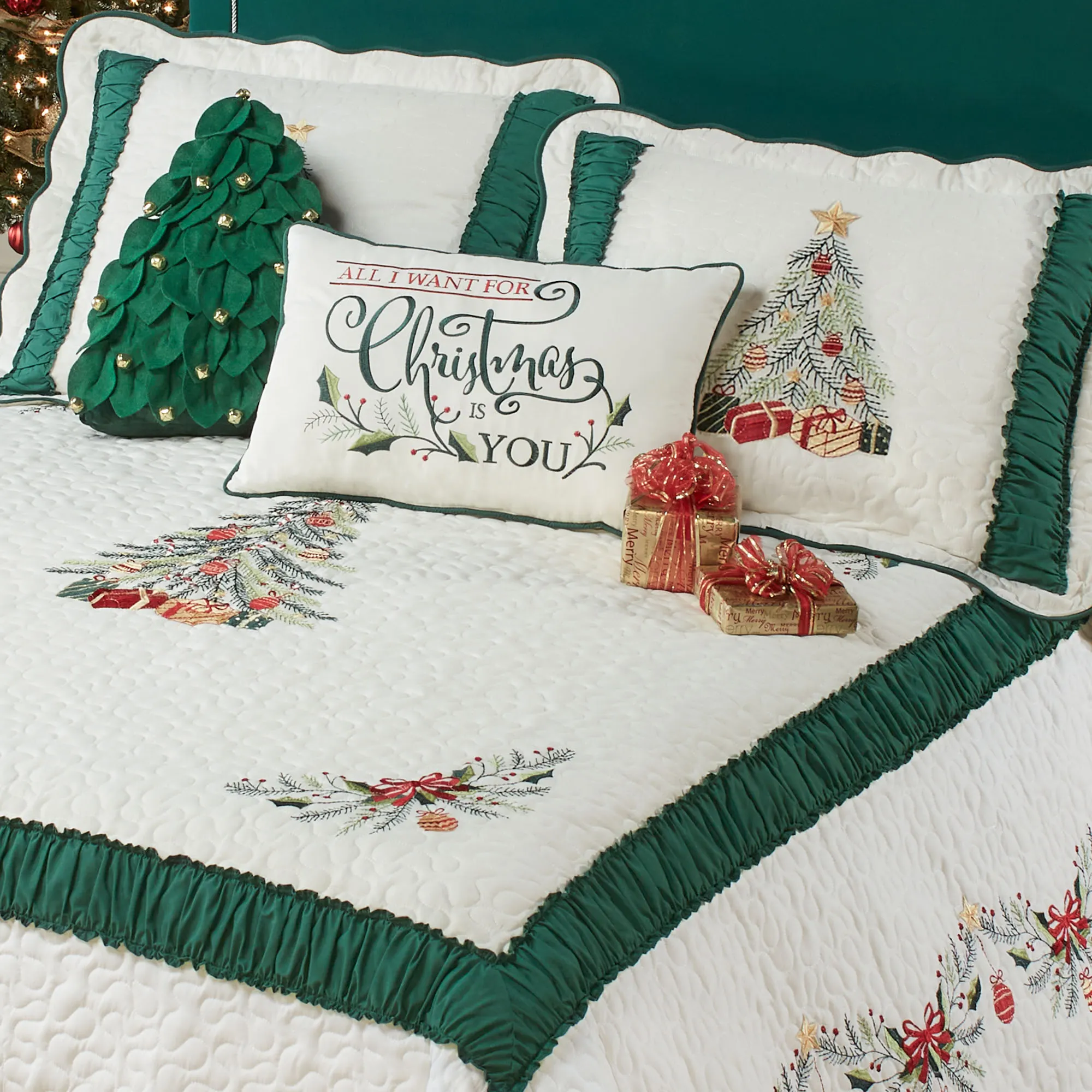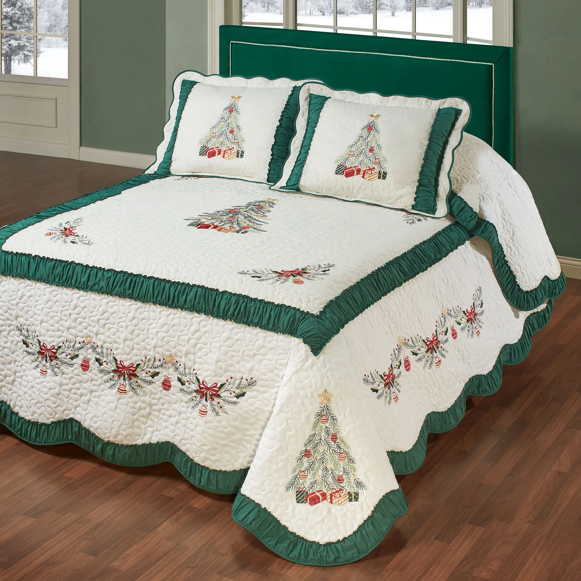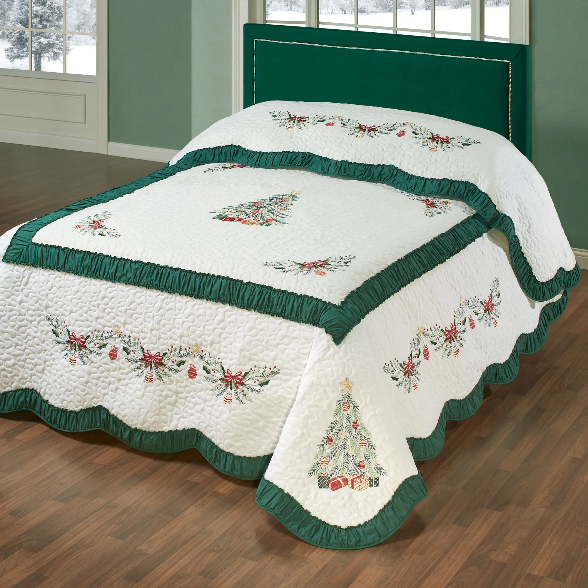 Holiday Dreams Quilted Embroidered Oversized Christmas Bedspread Bedding