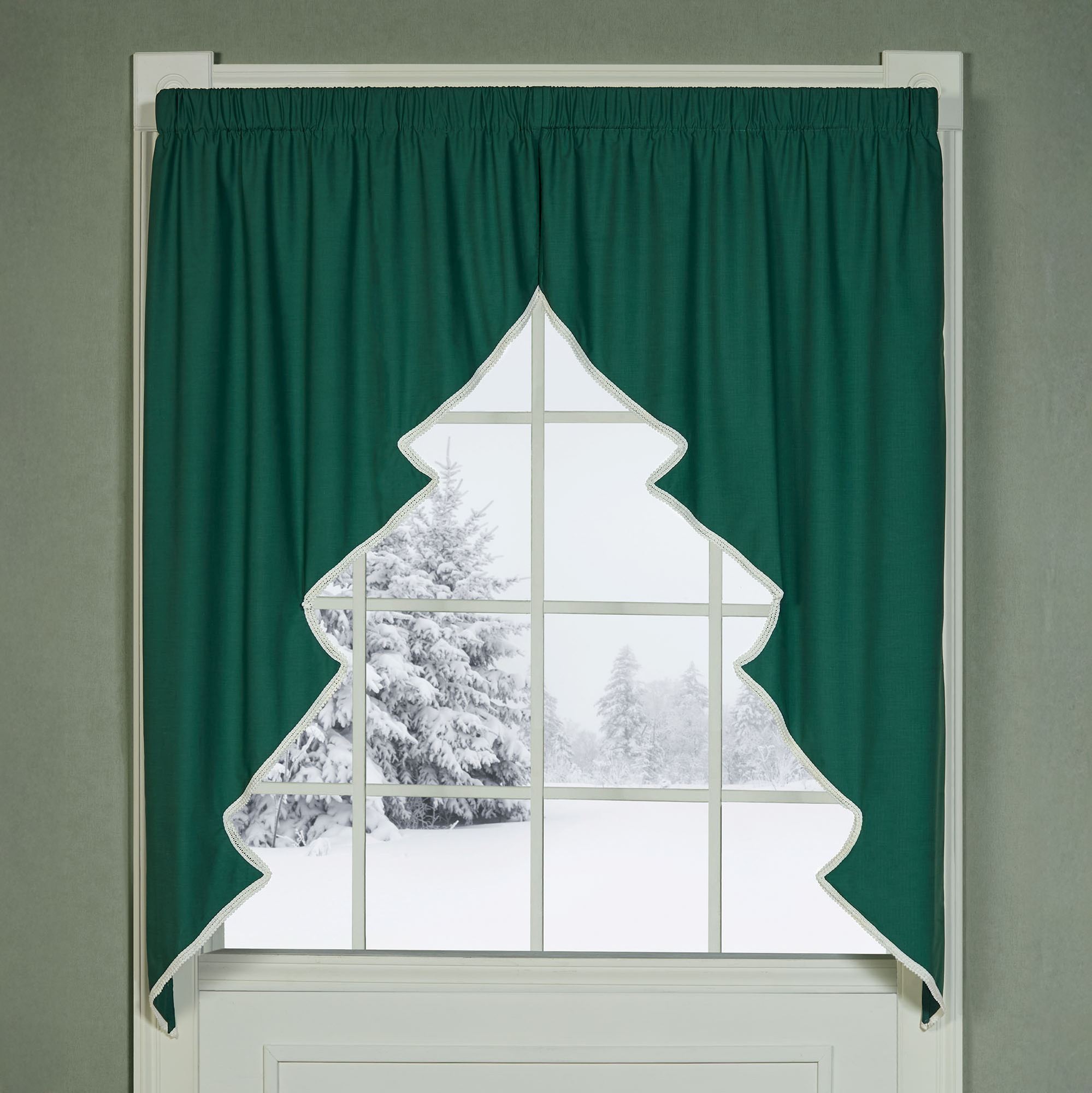 Celebrate the magic of the Christmas season with the Holiday Dreams Swag Valance Pair. These charming cotton/polyester valances are solid green with ivory pom-pom trim. The lined swag valance pair has a 3" rod pocket and measures 72"Wx63"L. Machine washable. Imported.