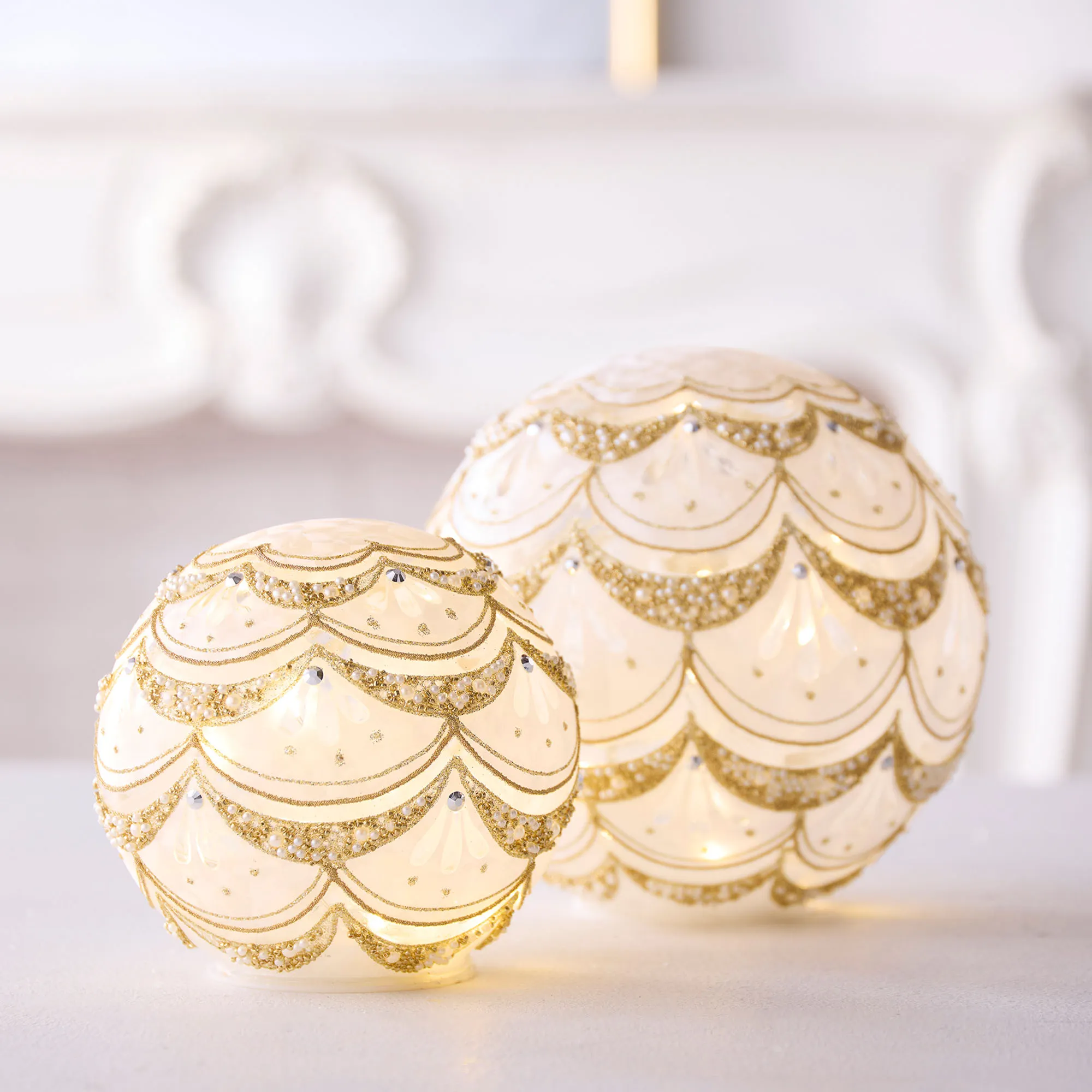 • Holiday globes have built-in LED string lights