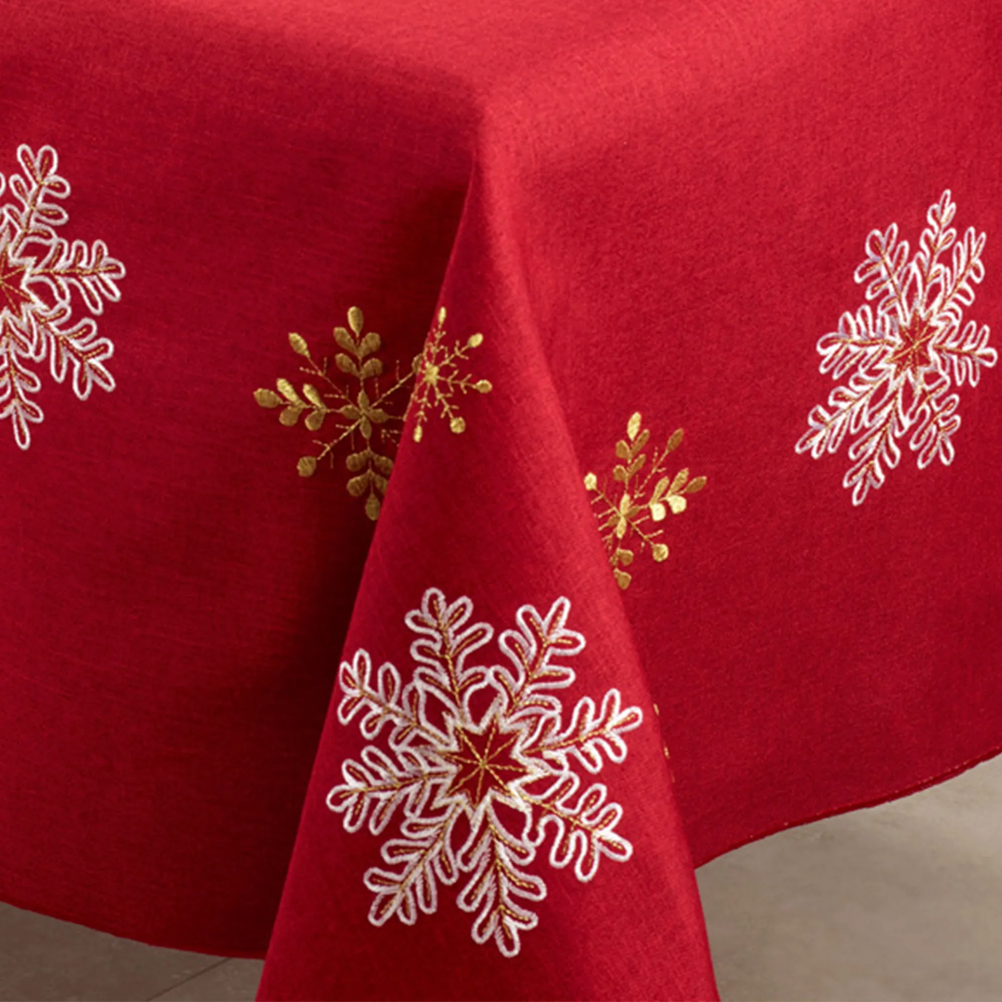 Holiday Snowflakes Red Embroidered Table Linens