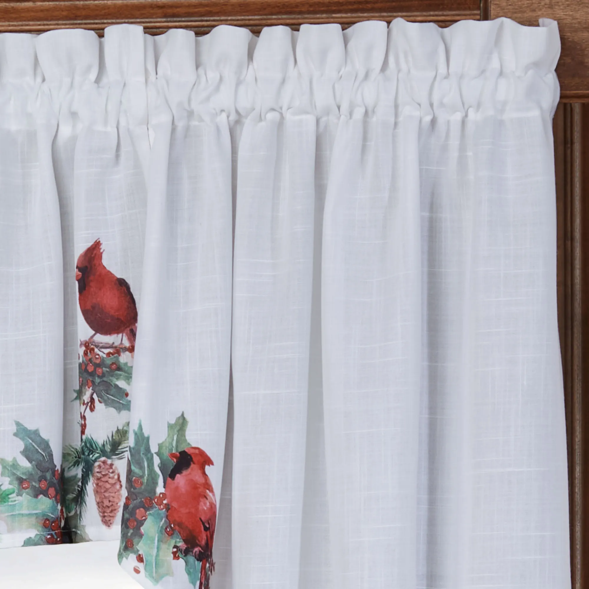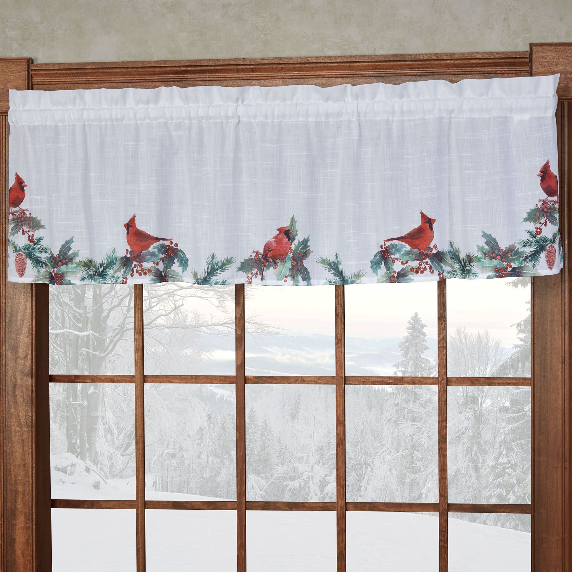 Holly Cardinals Holiday Window Valances