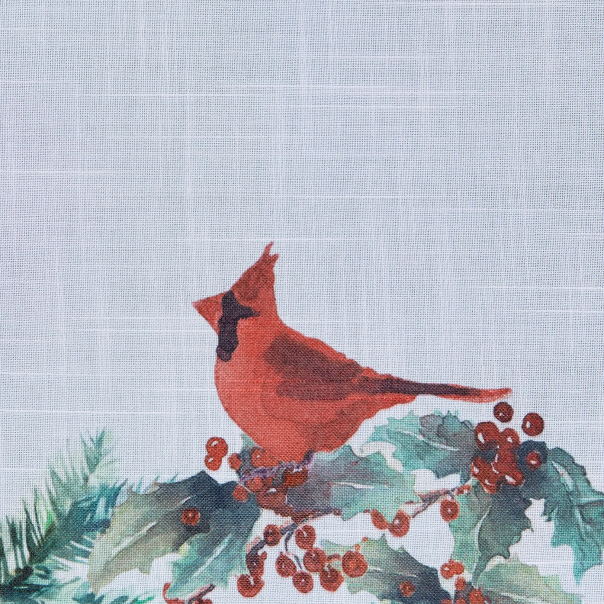 The Holly Cardinals Holiday Window Treatment is polyester. Imported.