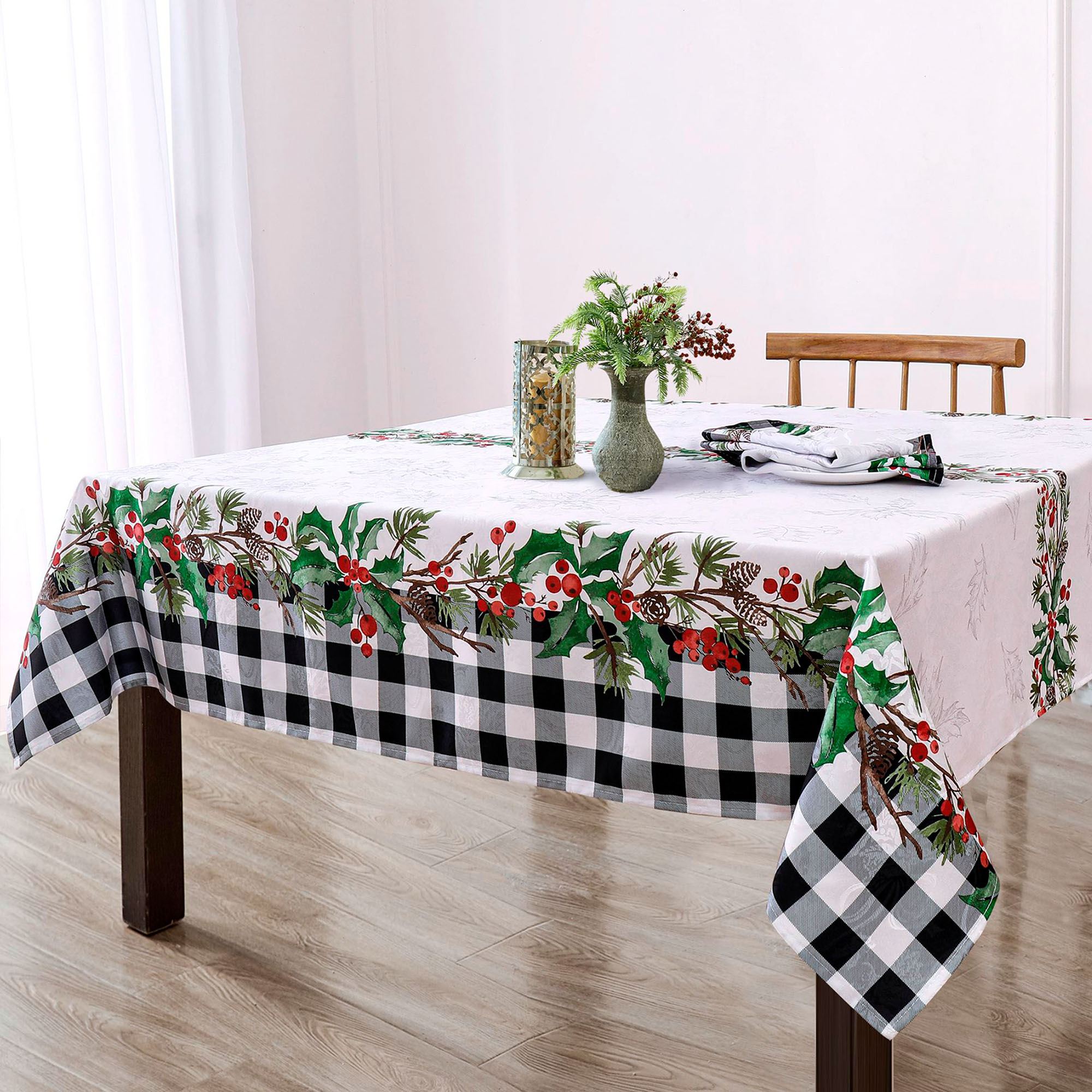 Holly Ridge Buffalo Plaid Farmhouse Holiday Rectangle Tablecloth and Table Linens