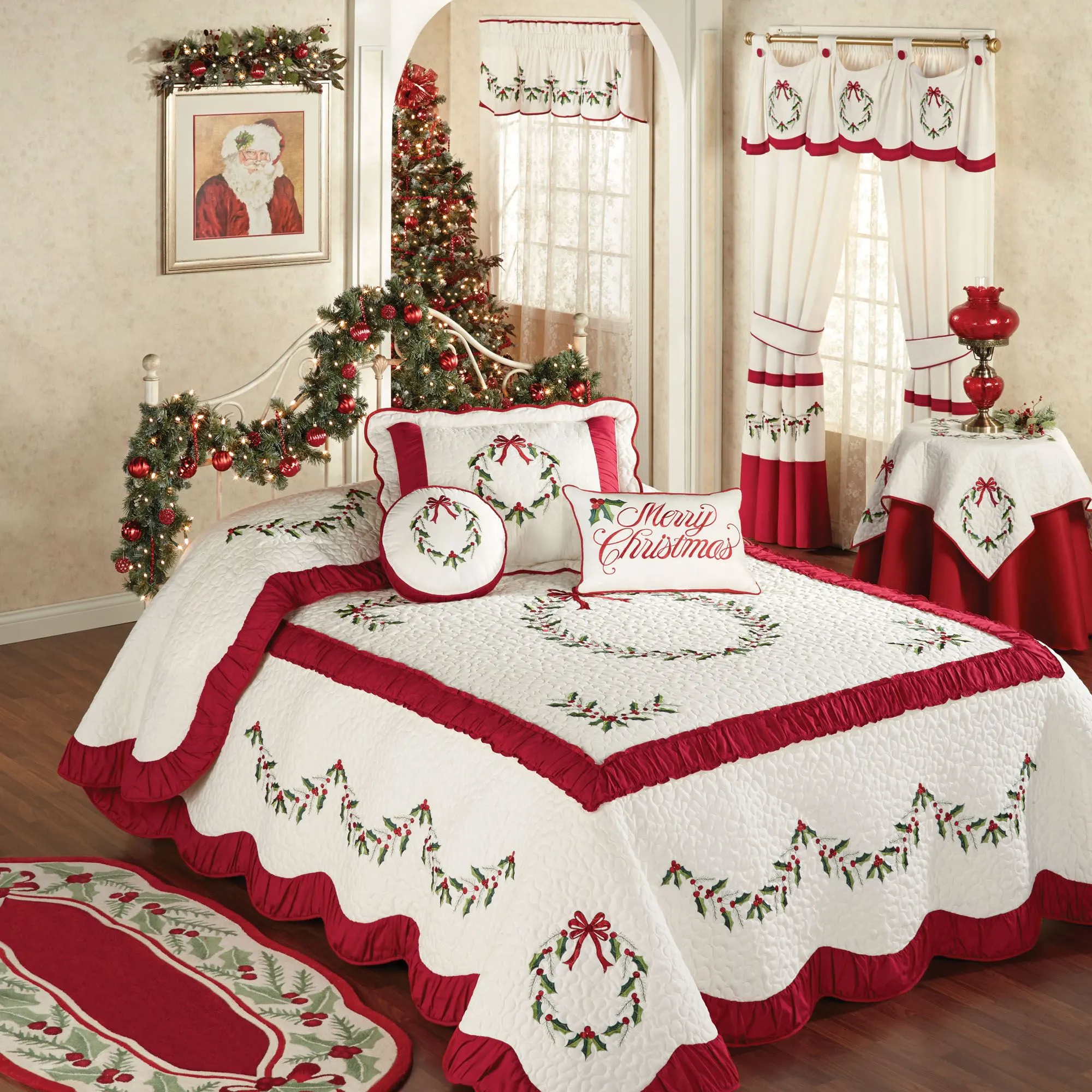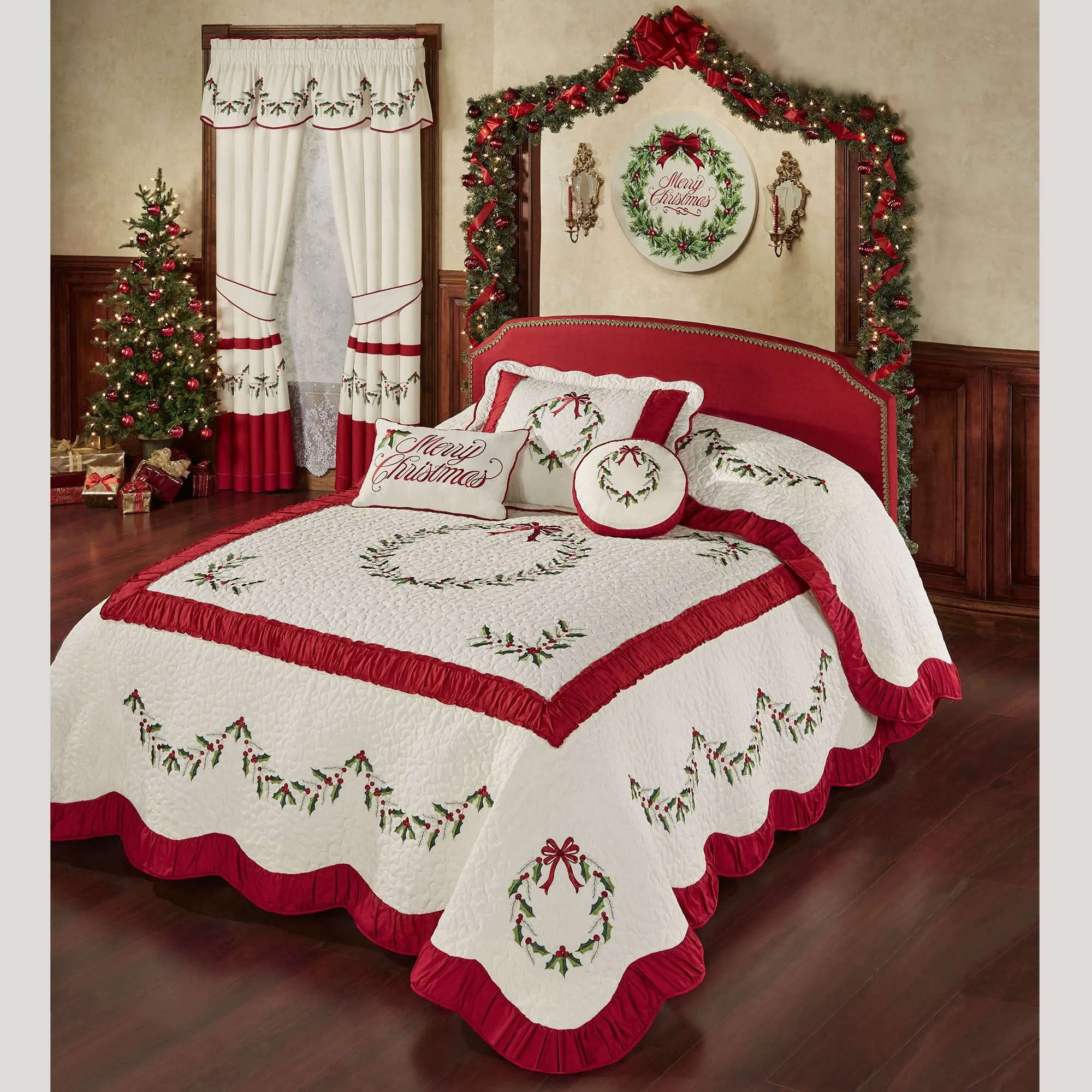Holly Wreath Quilted Oversized Holiday Bedspread Luxury Bedding