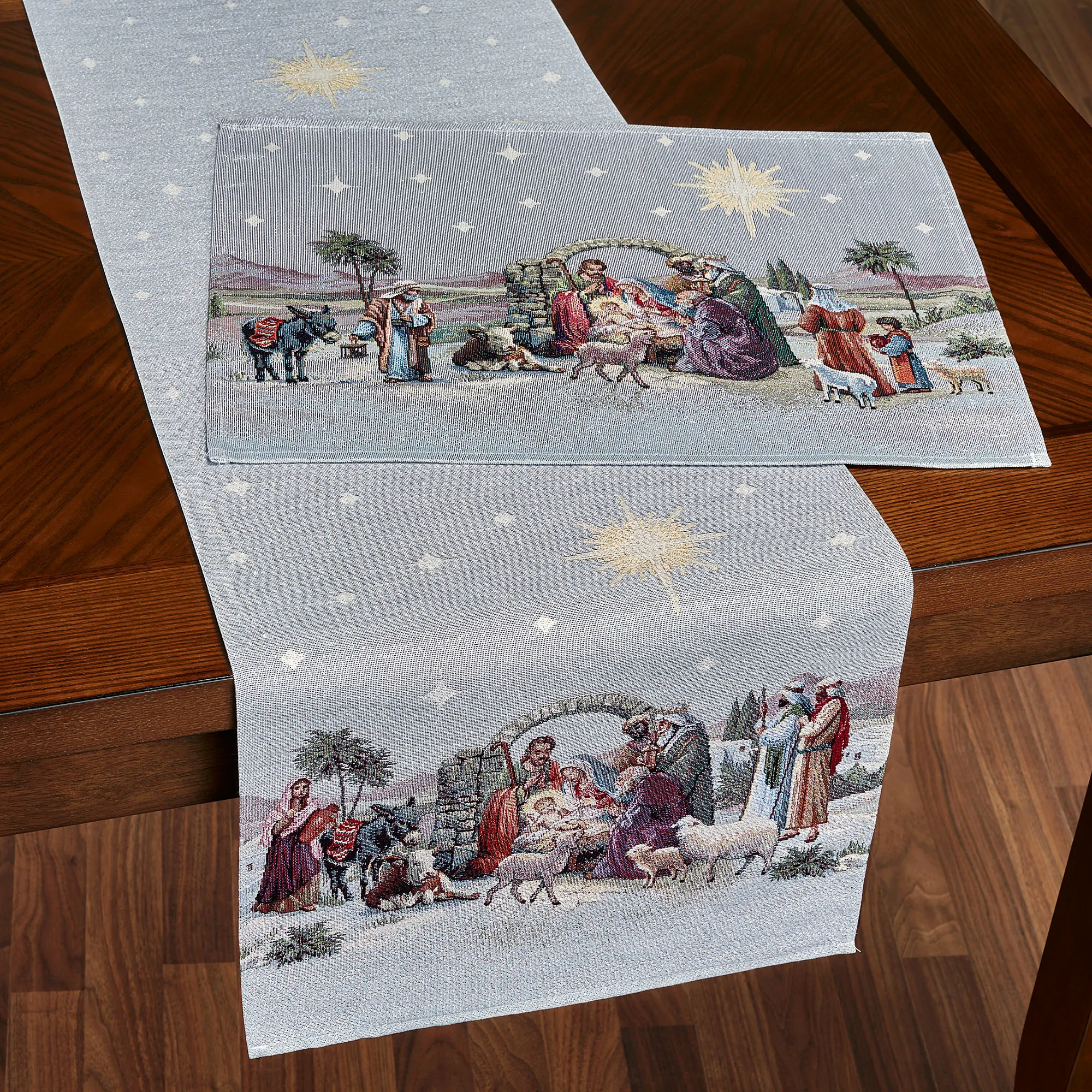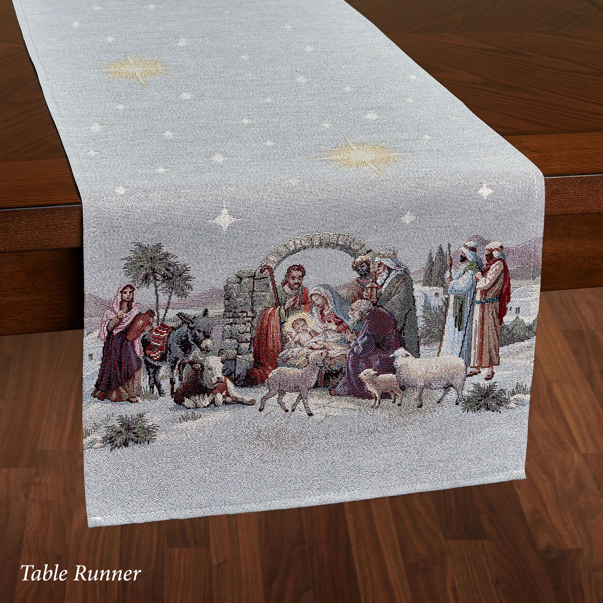 Holy Night Nativity Religious Christmas Woven Table Linens