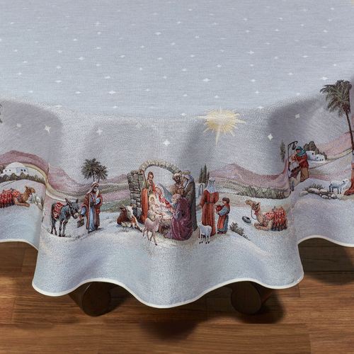 Holy Night Nativity Religious Christmas Woven Round Tablecloth