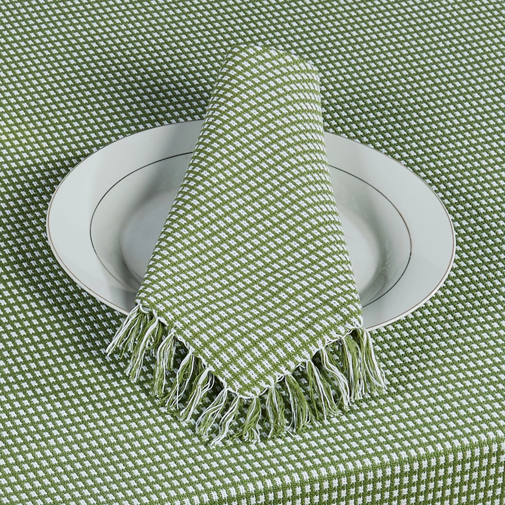 Homespun Cotton Woven Checkered Fringed Table Linens