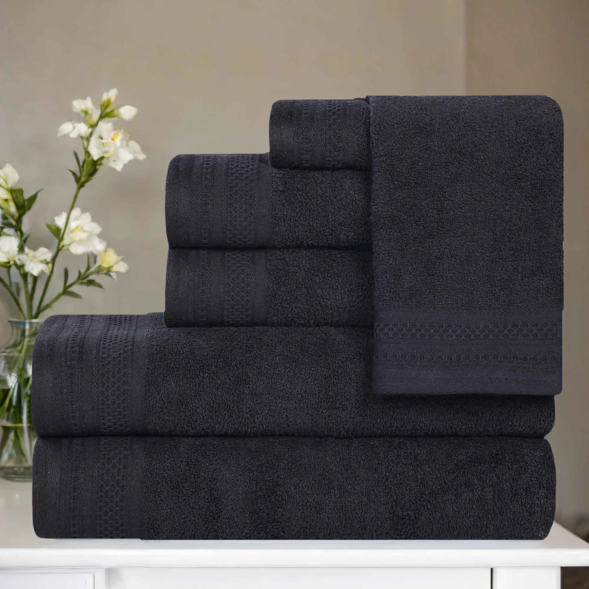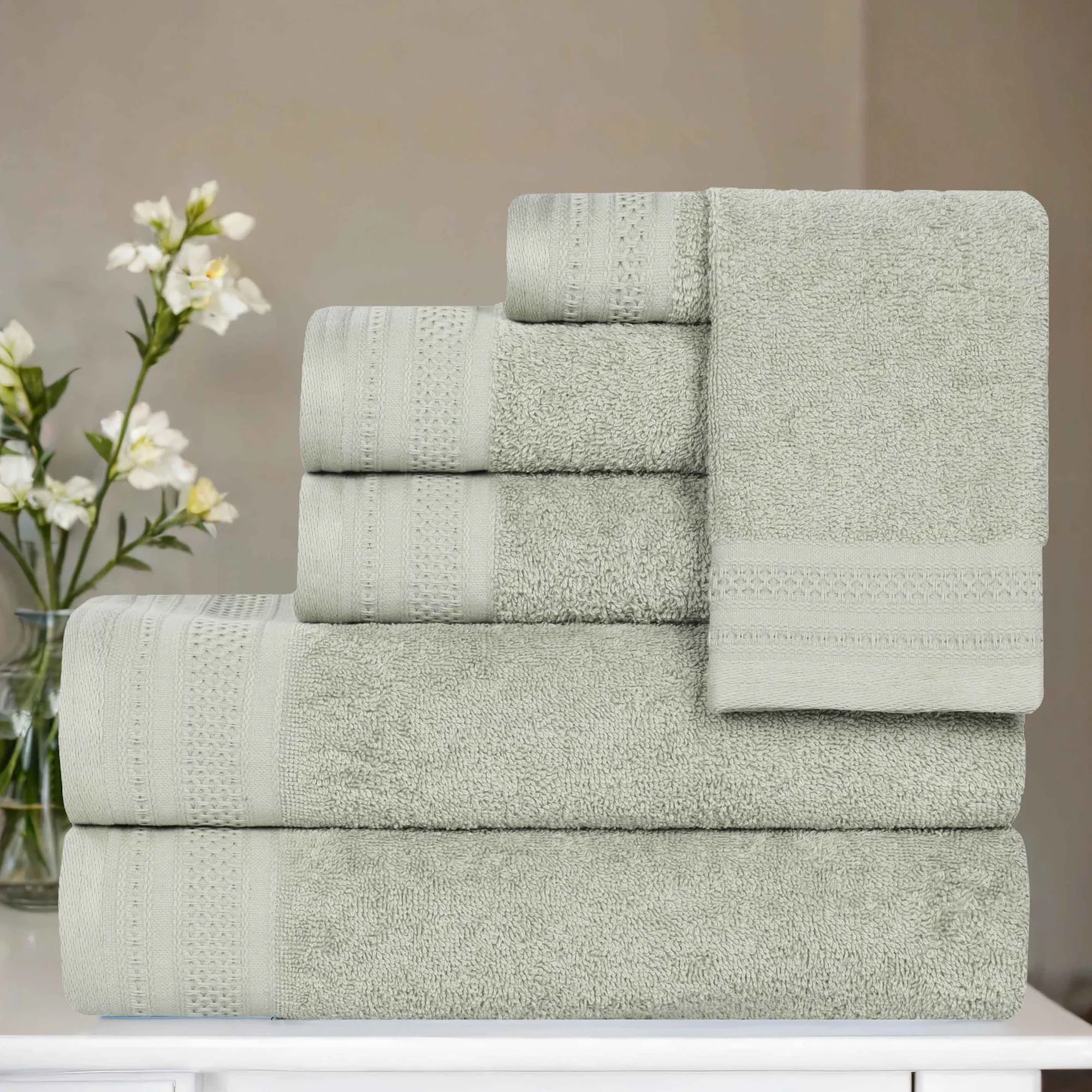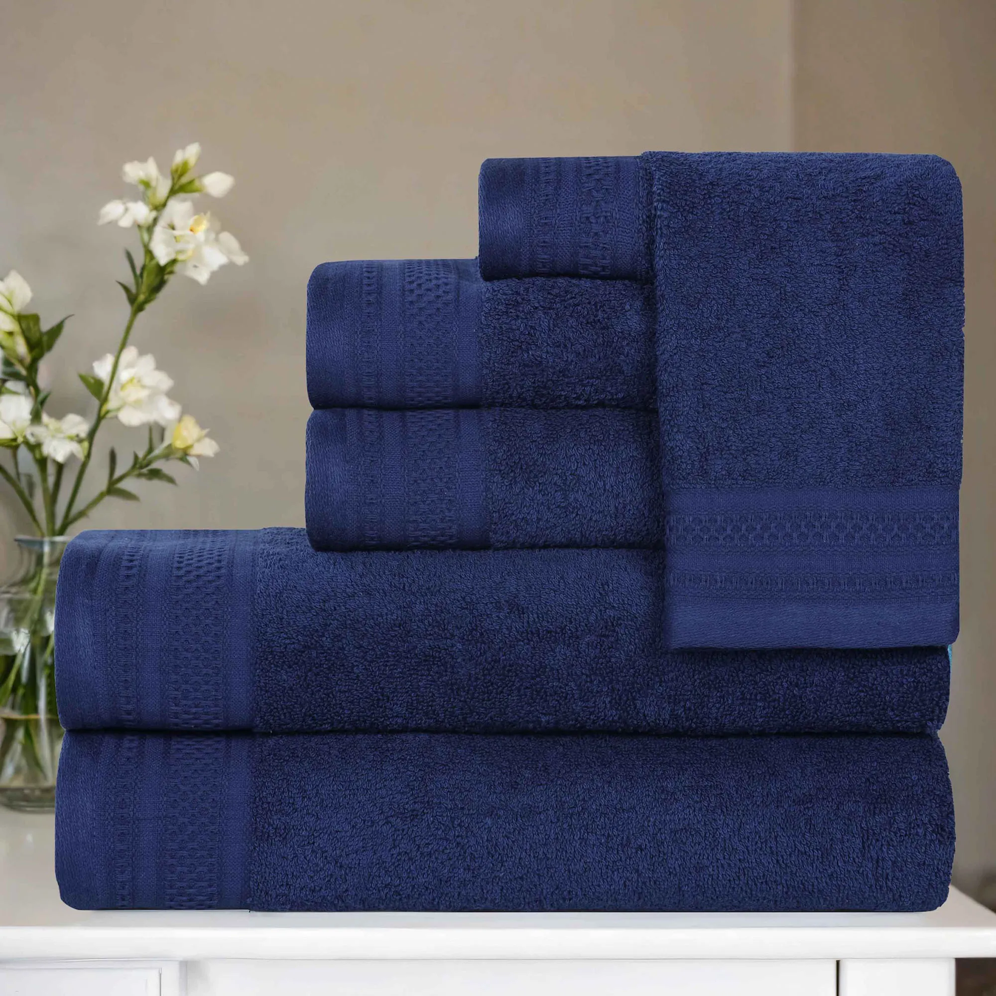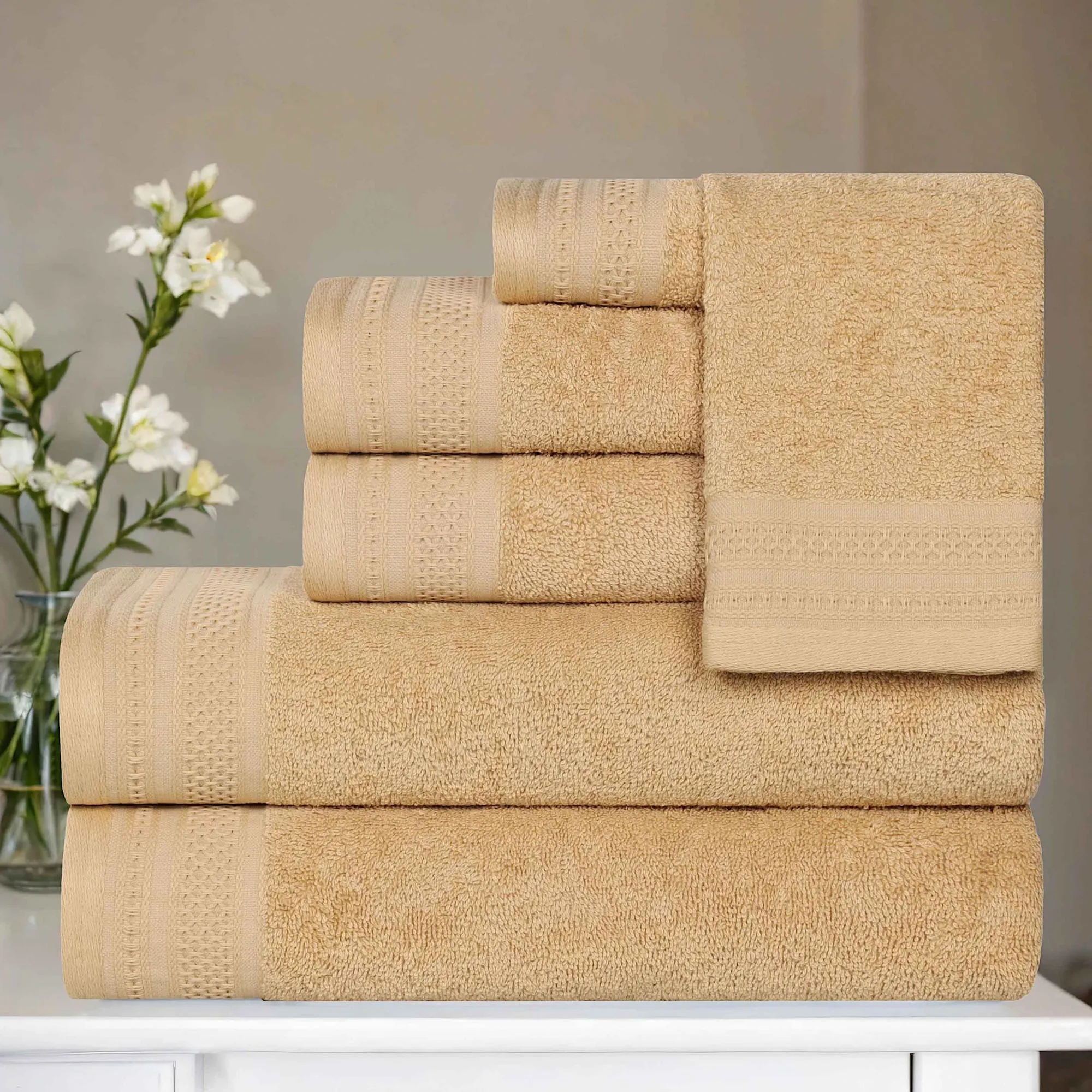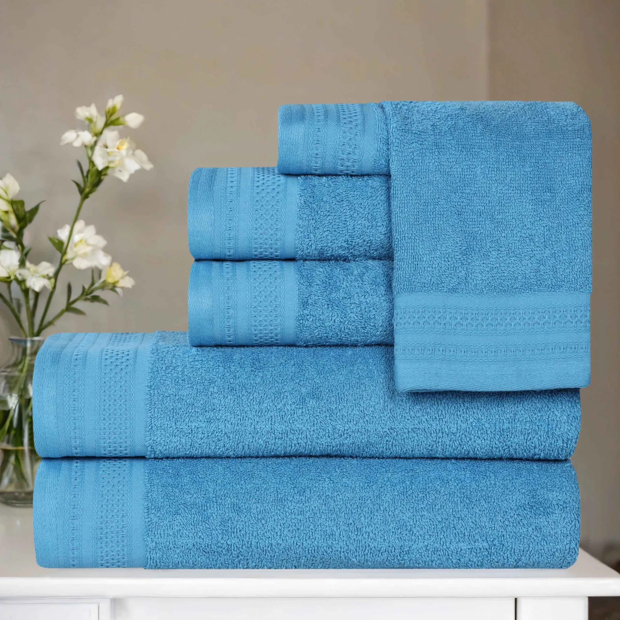 Honeycomb Quick Drying Terry Looped Combed Cotton 6 pc Bath Towel Set