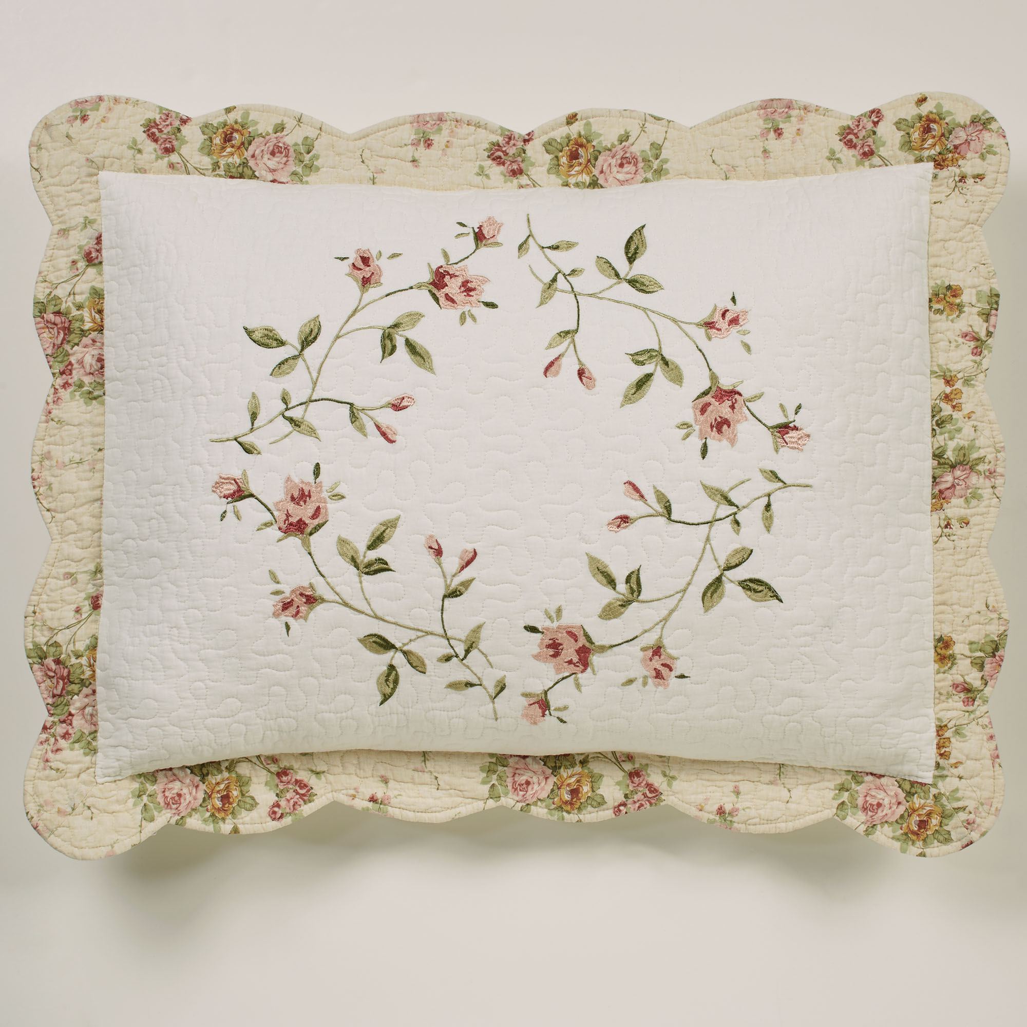 Honeysuckle Quilted Embroidered Floral Standard Sham
