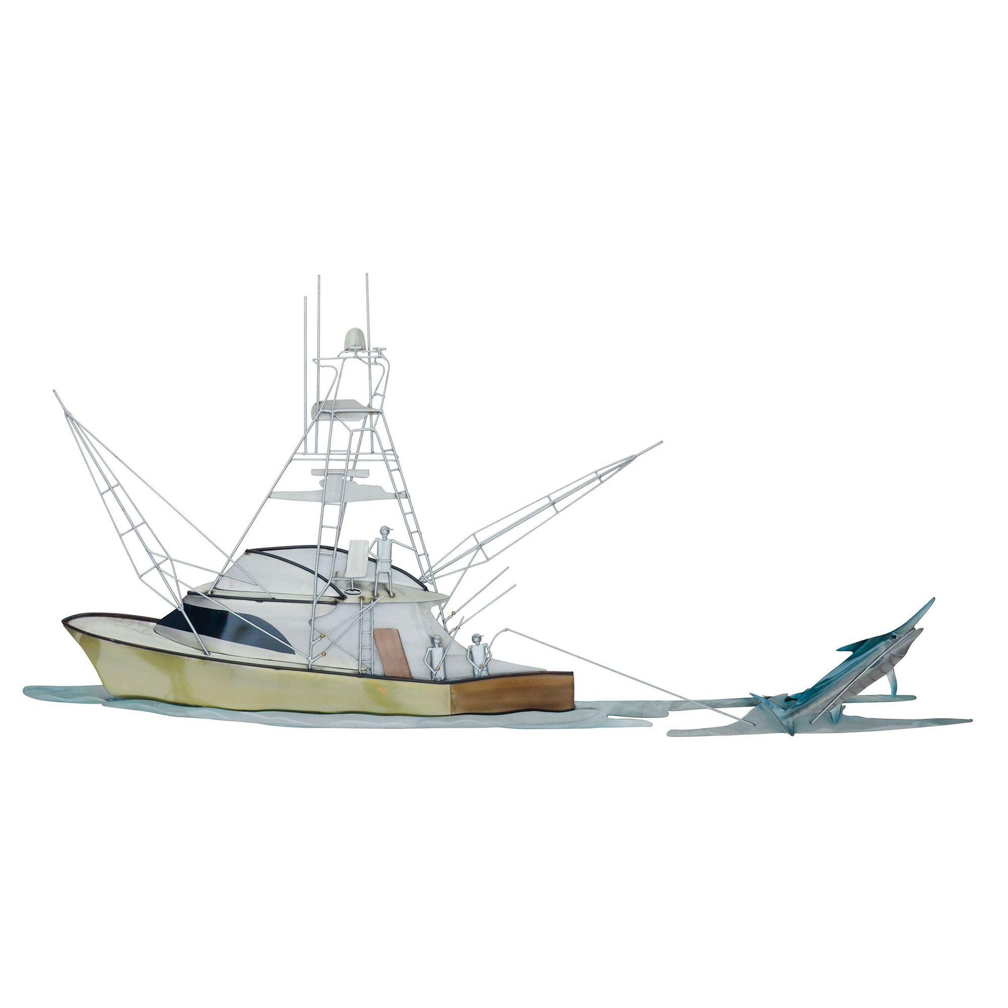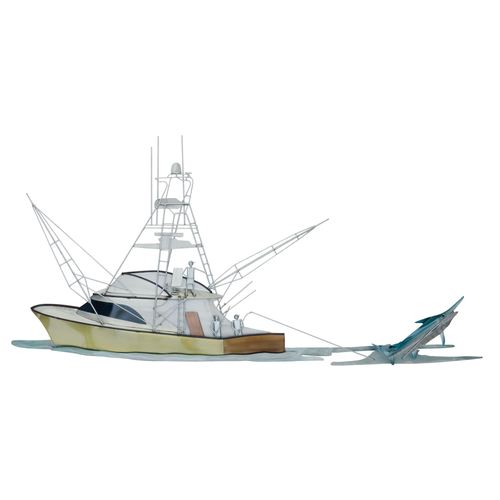 Hooked Up Fishing Boat Indoor Outdoor Stainless Steel Wall Sculpture
