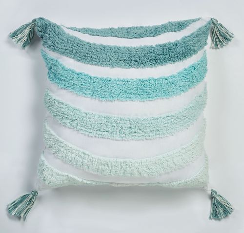 Horizon Aqua Tasseled Tailored Pillow 18" Square