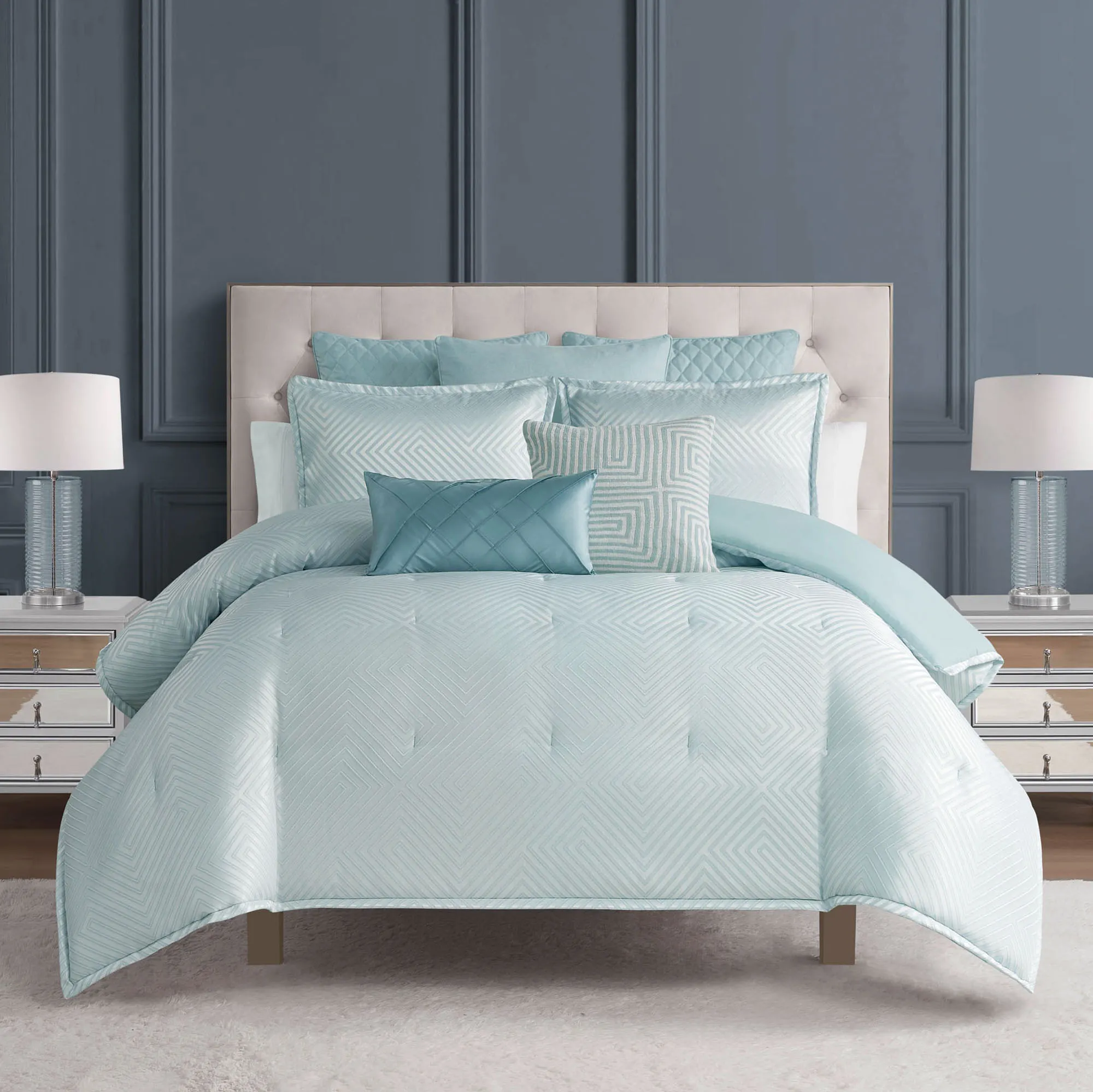 Houston Light Blue Geometric Comforter Set Luxury Bedding by Waterford Linens