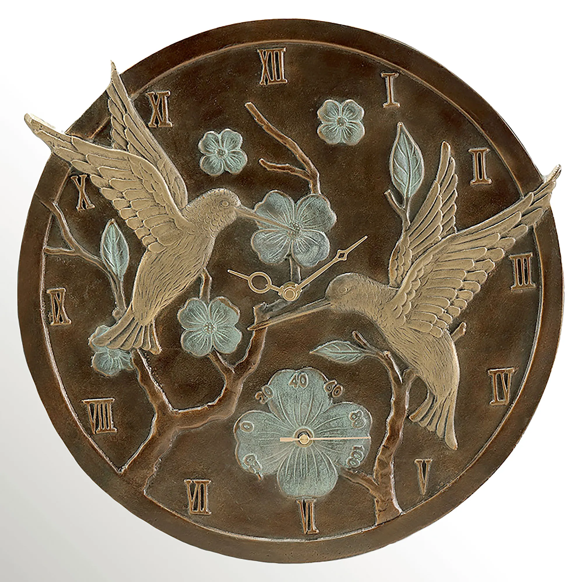 Hummingbird Outdoor Garden Wall Clock with Thermometer